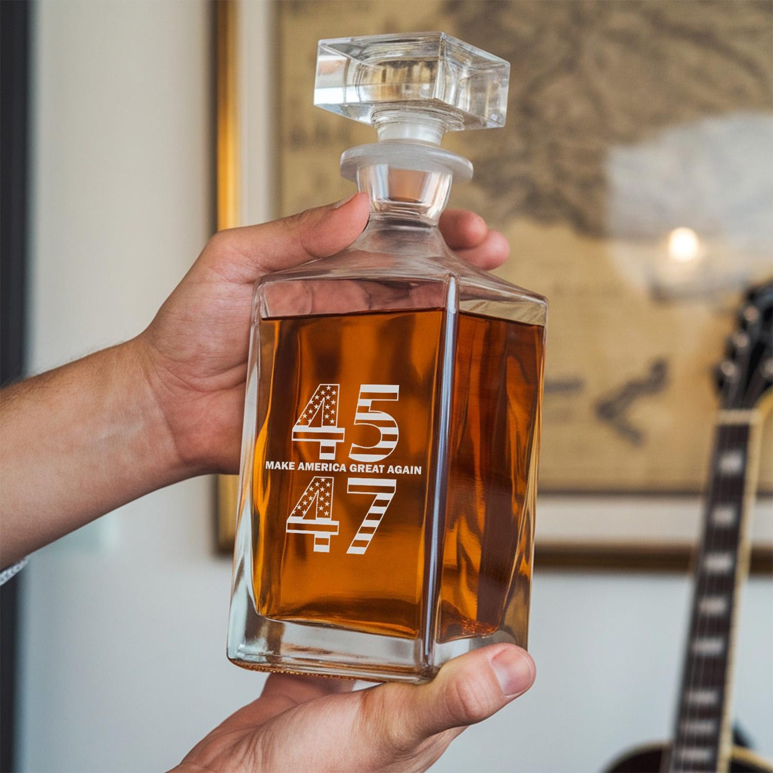 45 47 MAGA Trump Decanter With Whiskey Glass | Trump 2024 | Patriotic Gift | 47 Presidential | Make America Great Again | MAGA gift