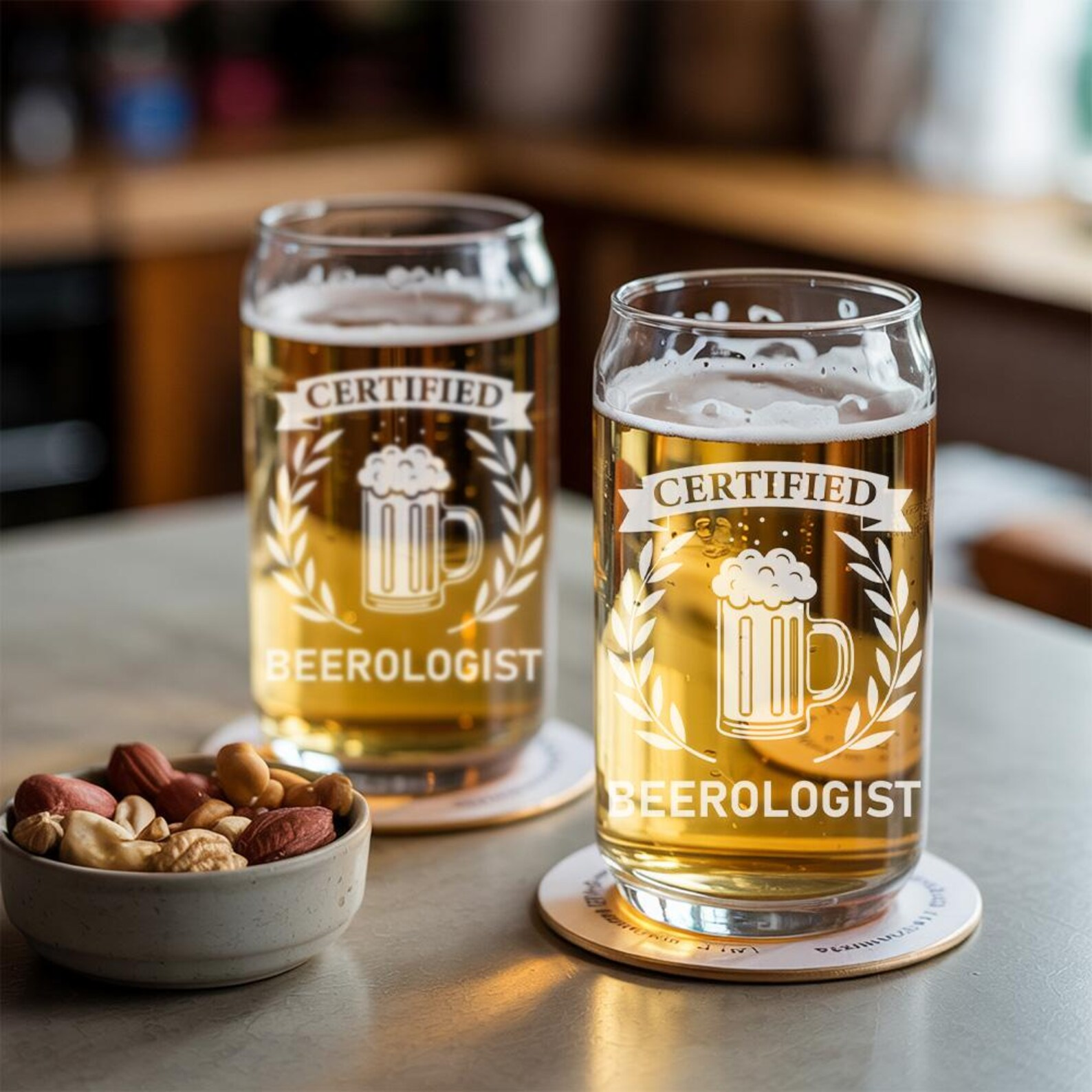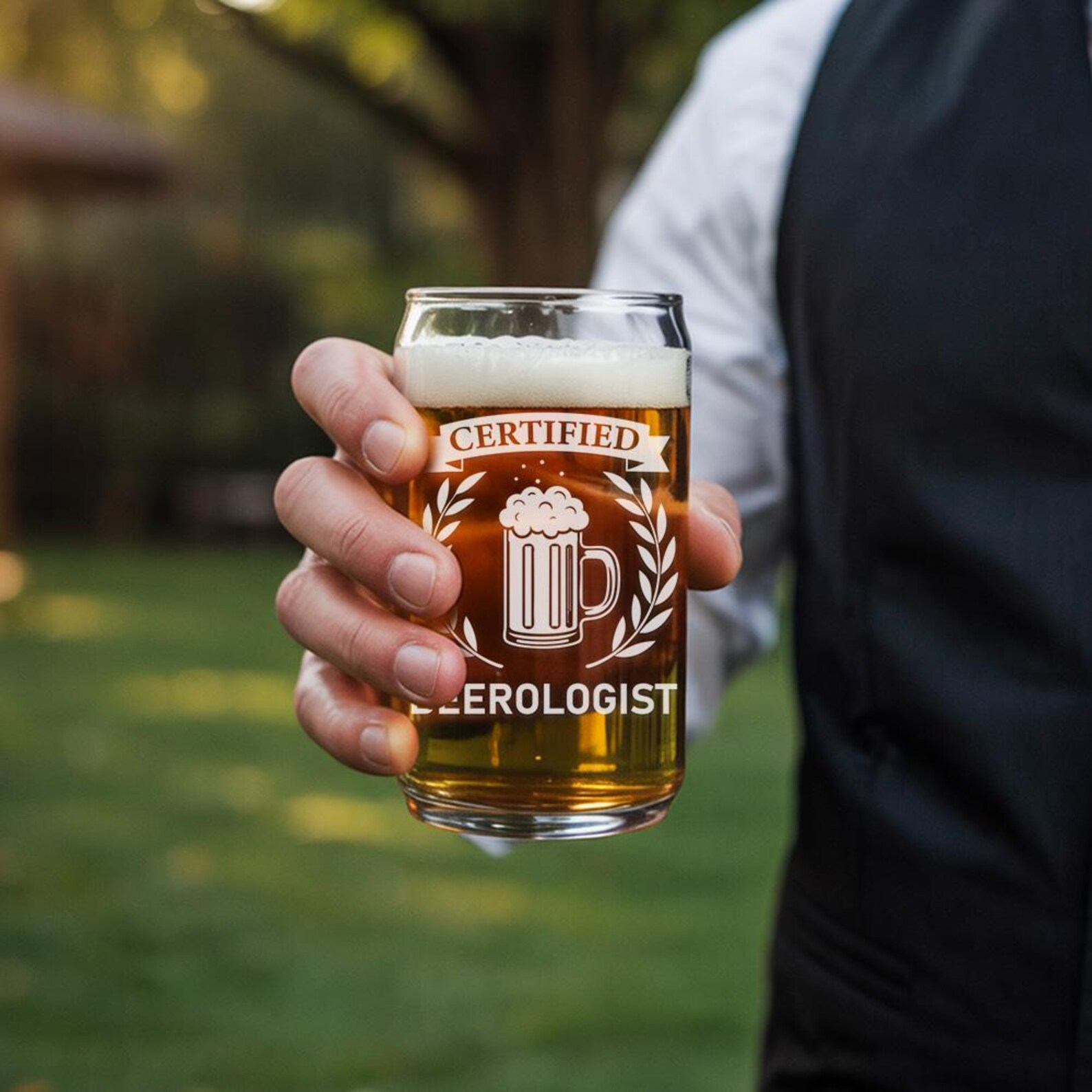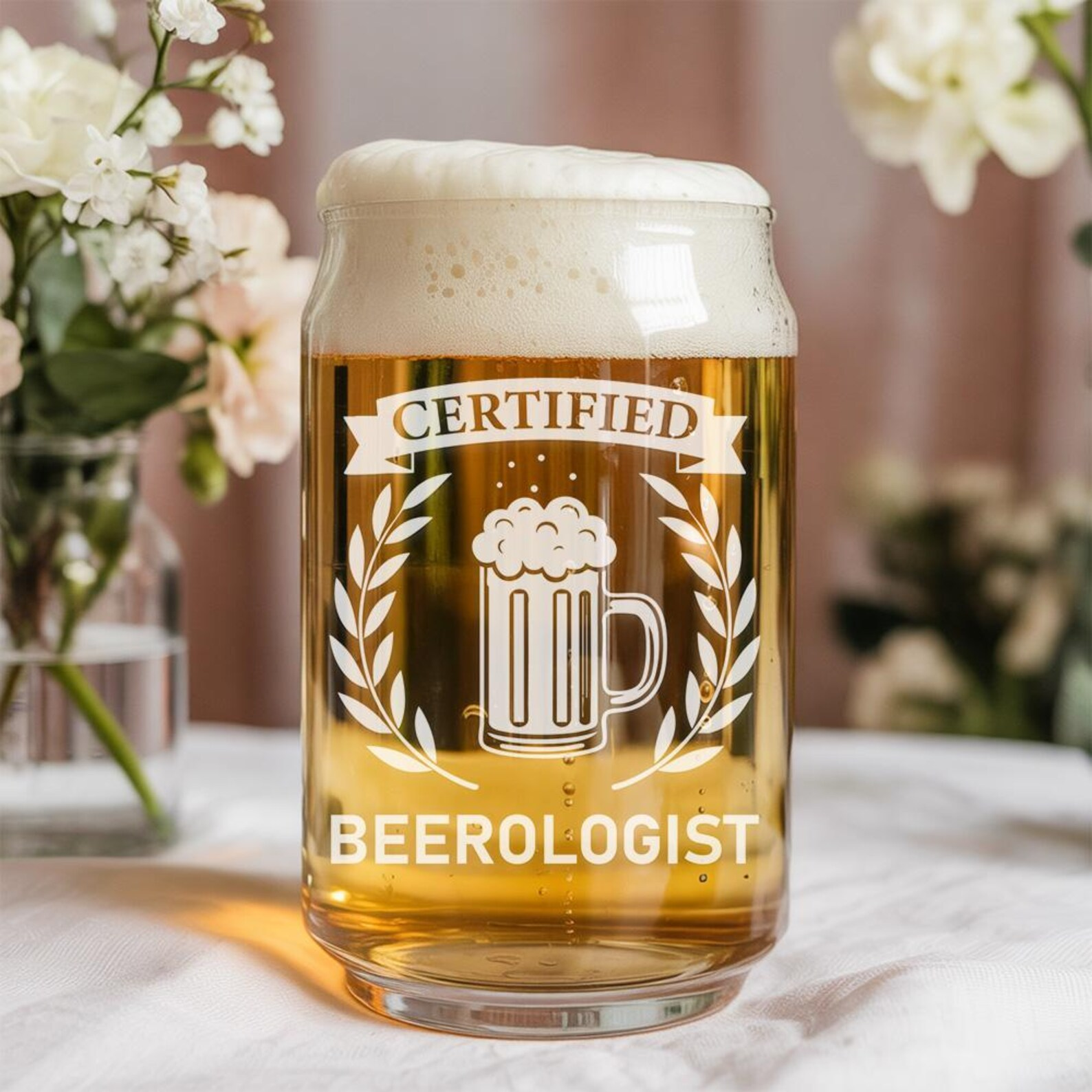 Certified Beerologist Beer Can Glass 16oz | Funny Beer Can Glass | Unique Gift Idea