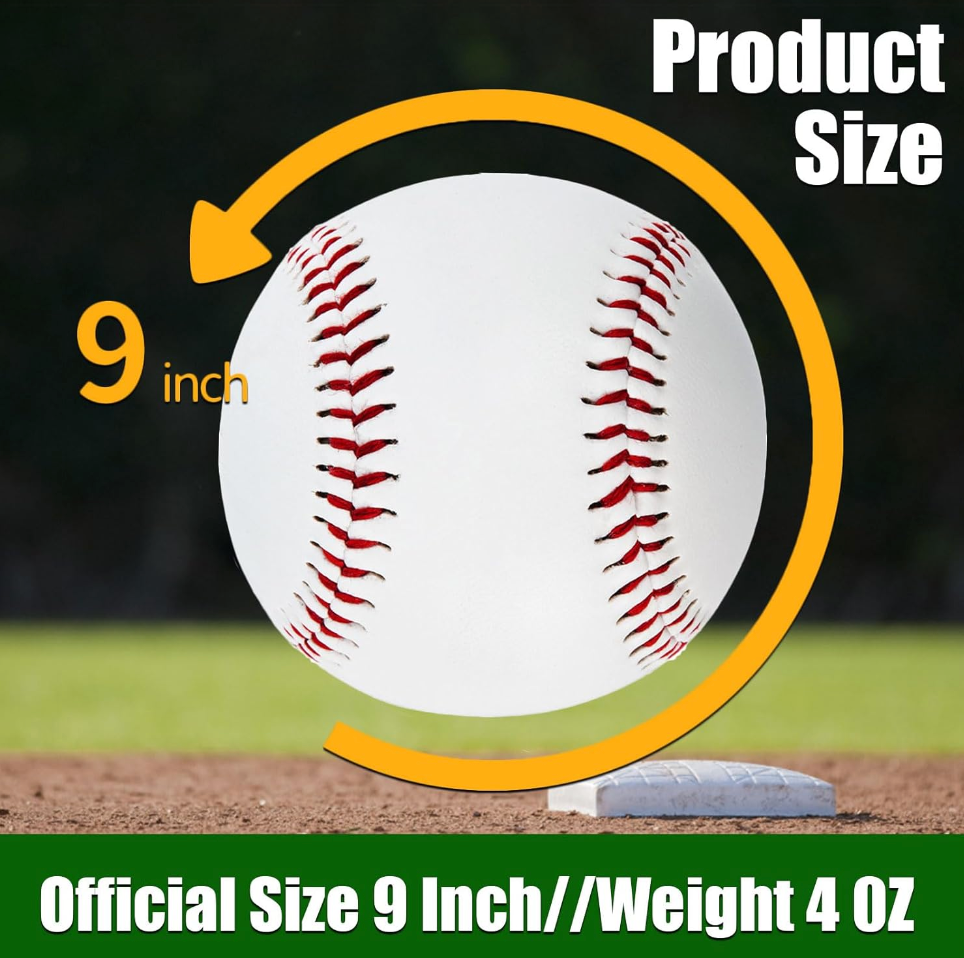 Official Size & Weight – Standard adult baseball with a 9-inch circumference and 4 oz weight