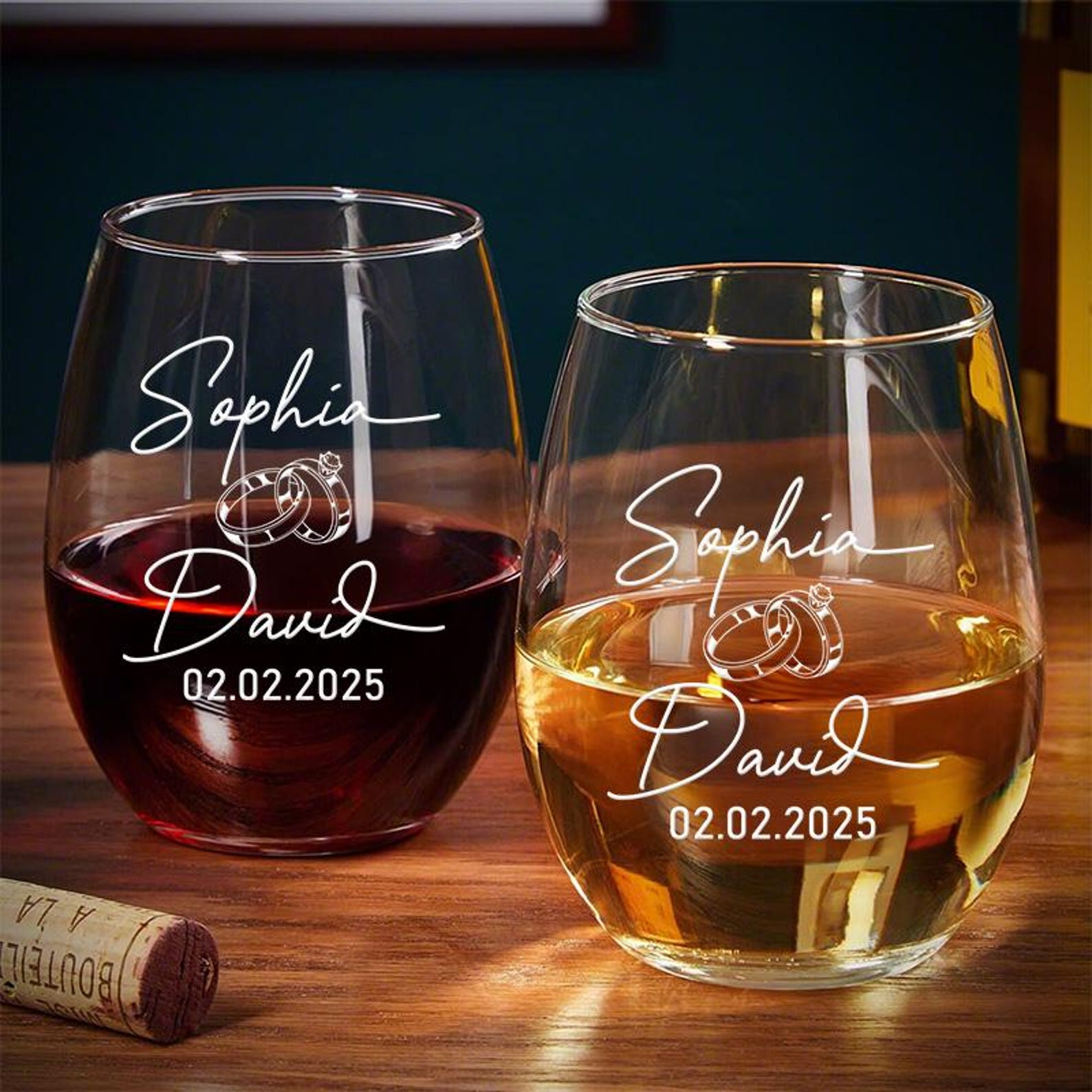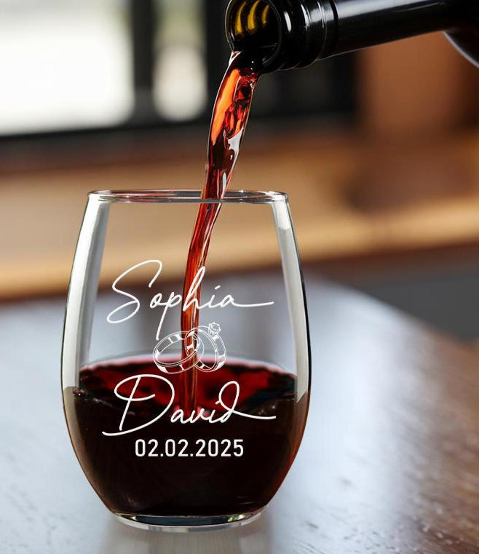 Custom Bride & Groom Timeless Wine Glass | Glass For Wedding | Wedding Gifts
