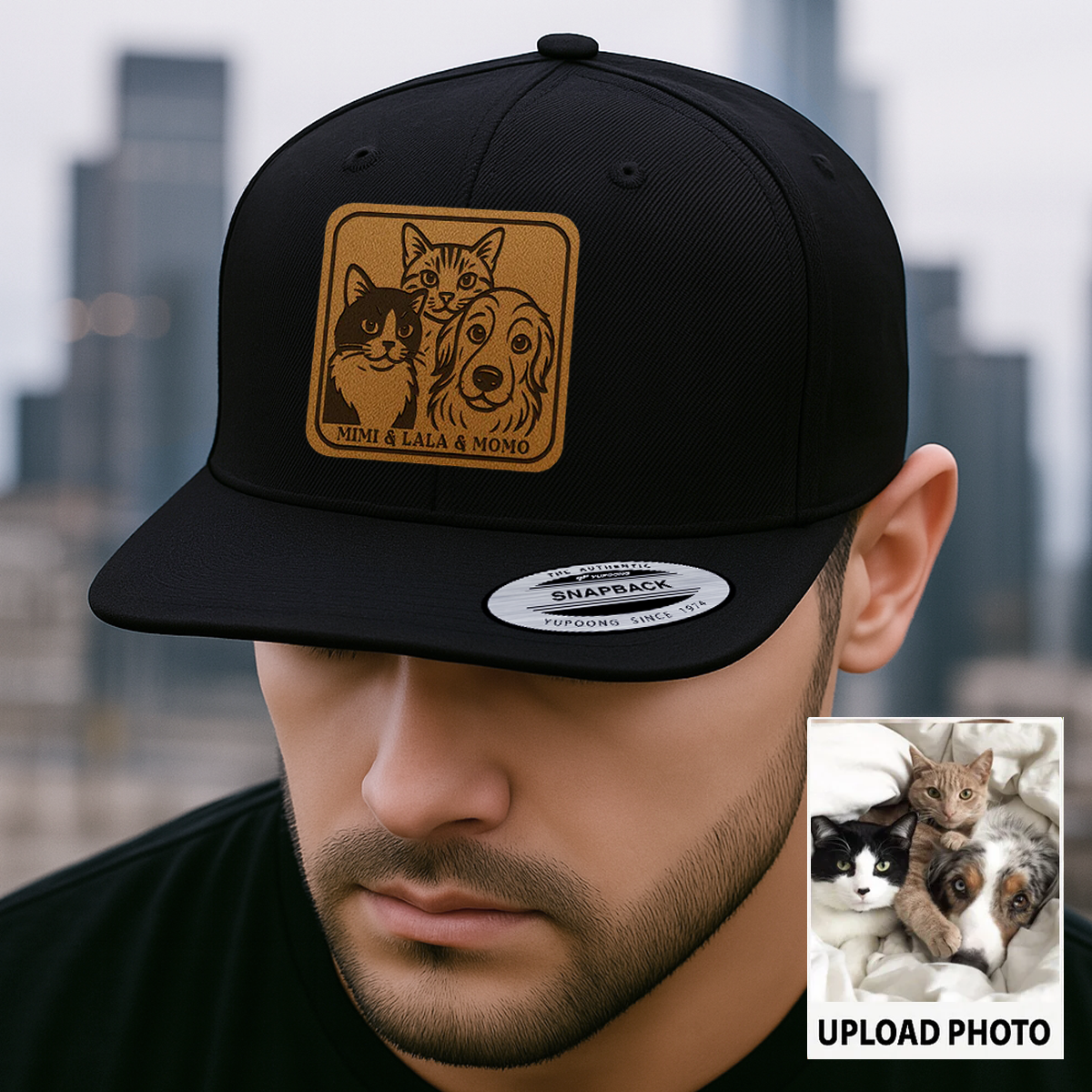 Custom Cat Photo Trucker Hat | Personalized Cat Patch Leather Patch Hat | Gift For Cat Lovers TNGANSP030