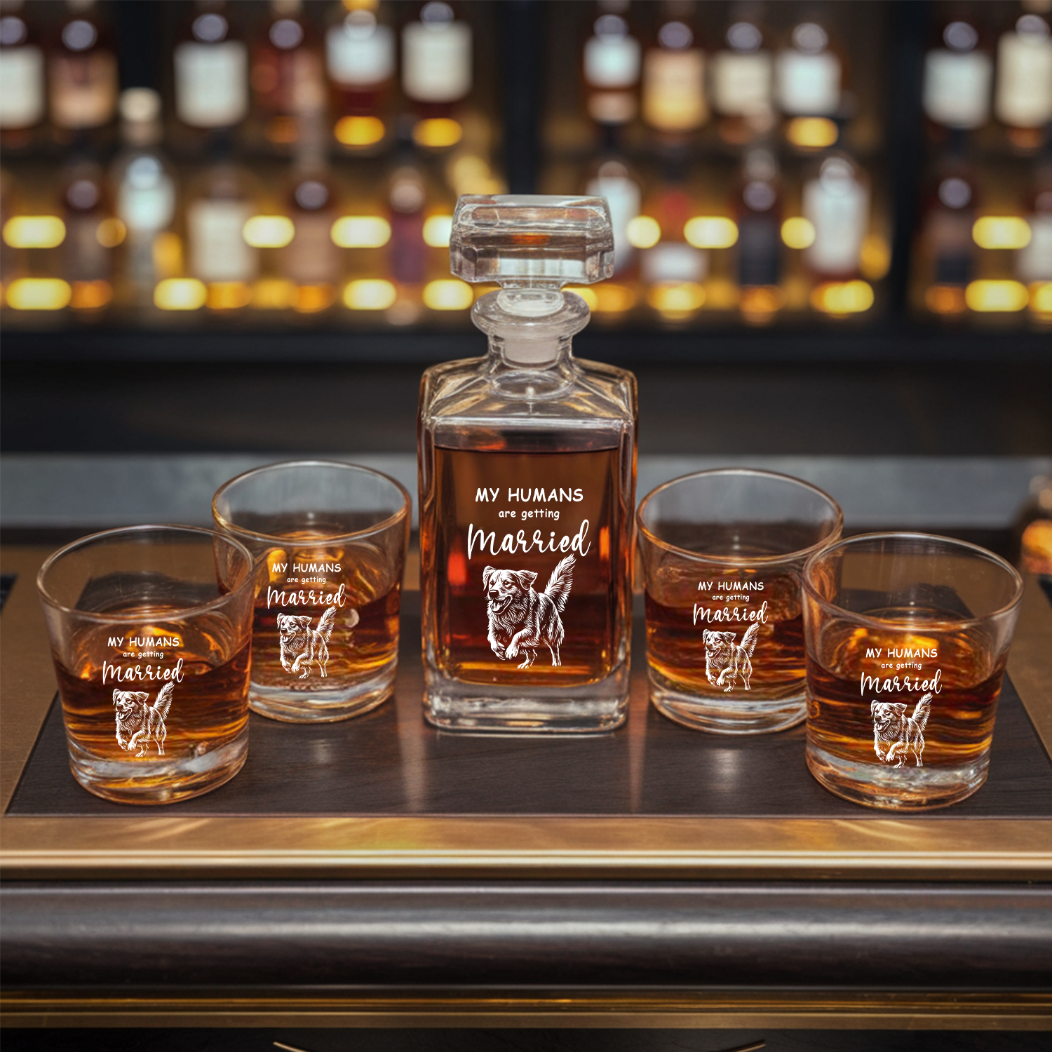 Custom Dog Photo Whiskey Glass And Decanter Set | Personalized My Humans Are Getting Married Decanter | Gift For Dog Lover | Pet Memorial Gift TNN015