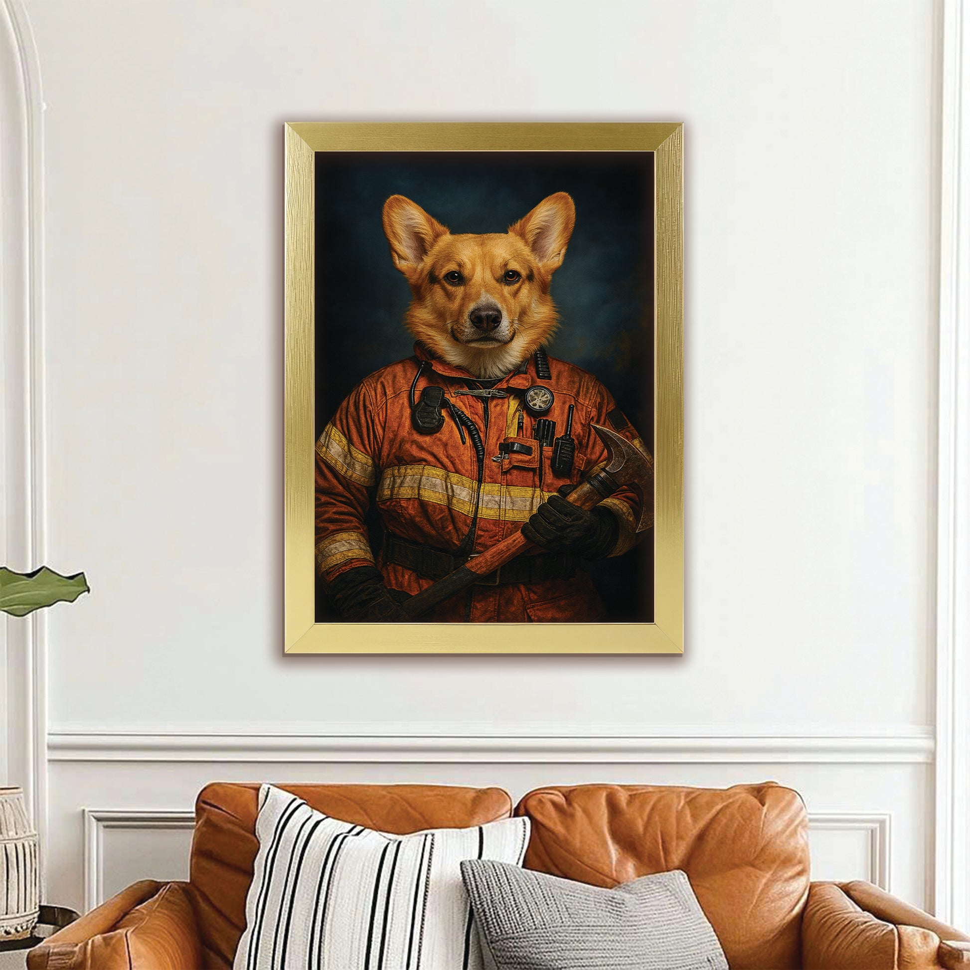 Custom Dog Photo Firefighter Canvas Framed Wall Art _ Gift For Dog Lovers