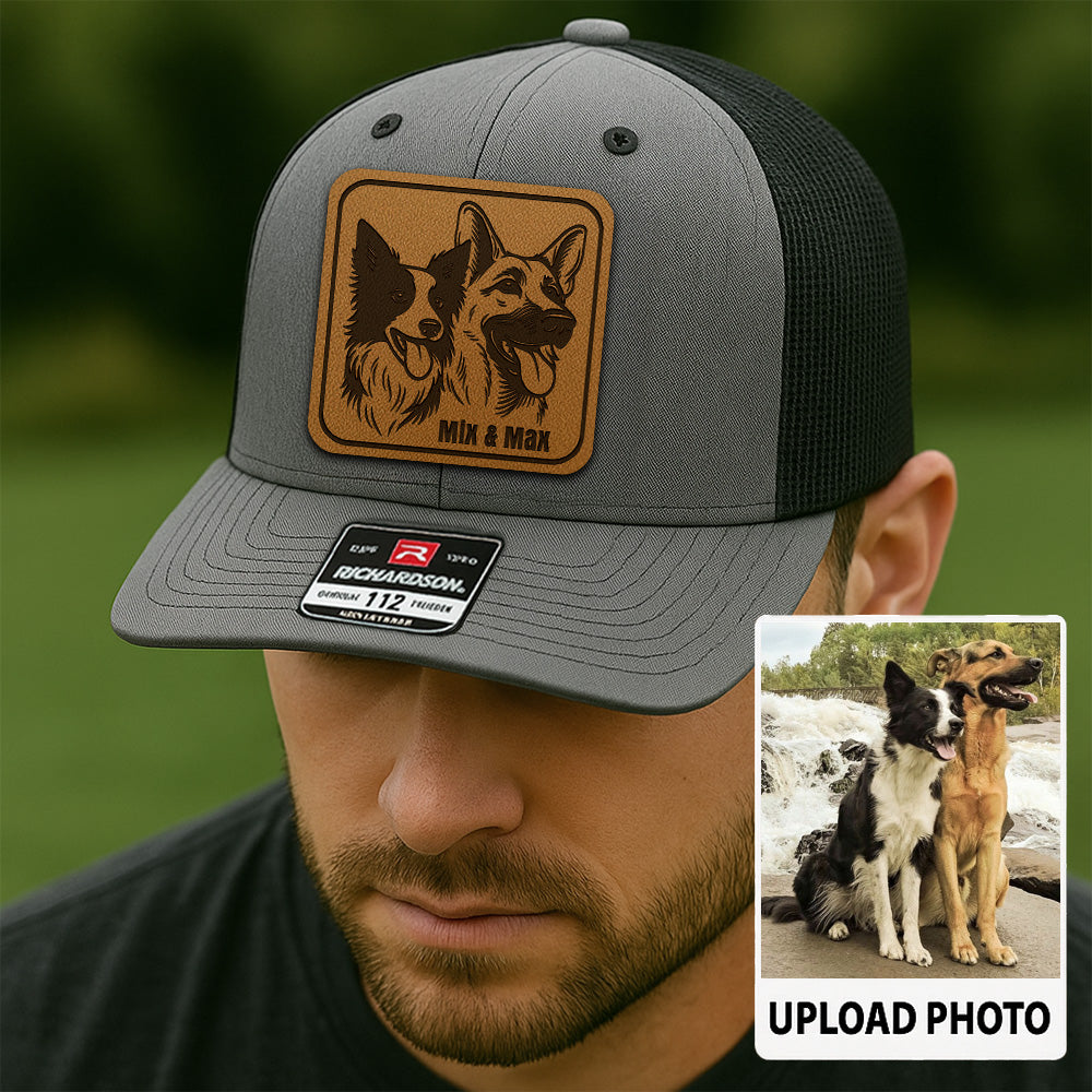 Custom Dog Photo Trucker Hat | Personalized Pet Patch Leather Patch Hat | Dog Memorial Gift TNGANSP022