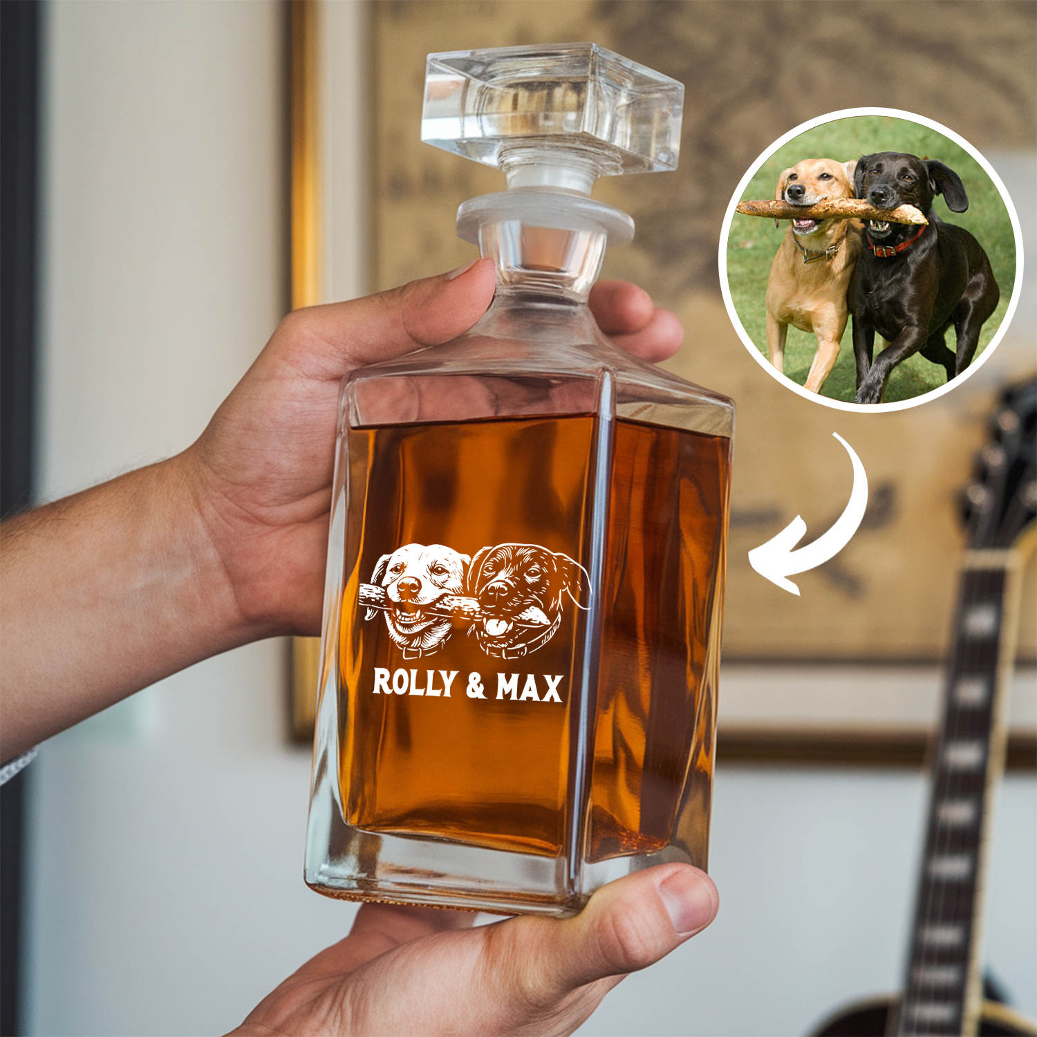 🐾🥃 Custom Pet Photo Whiskey Decanter & Glass Set