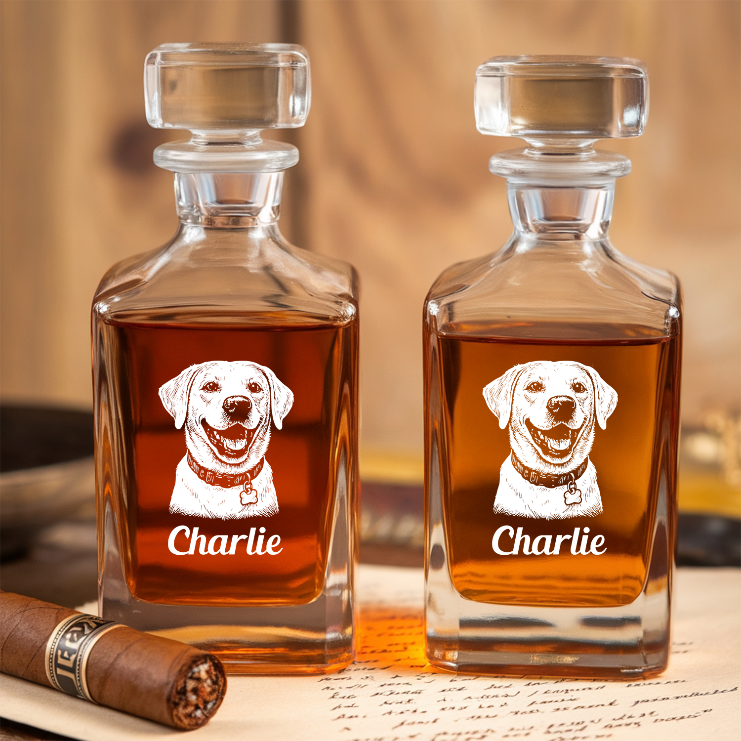 Turn your furry best friend into the star of your home bar with this Custom Pet Whiskey Decanter Set – featuring your pet’s photo and name beautifully engraved on both the glass decanter and matching 11oz whiskey glass. It’s the perfect blend of heartfelt and highball. 🐶❤️