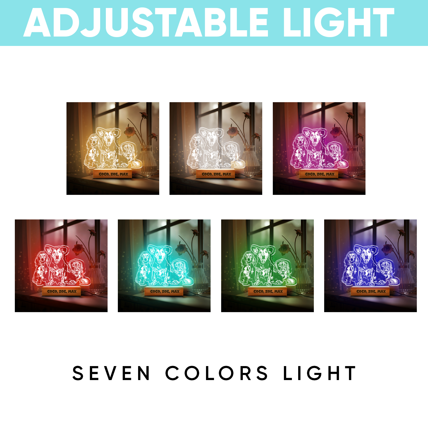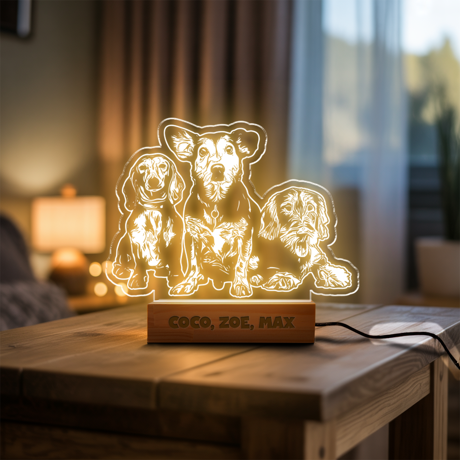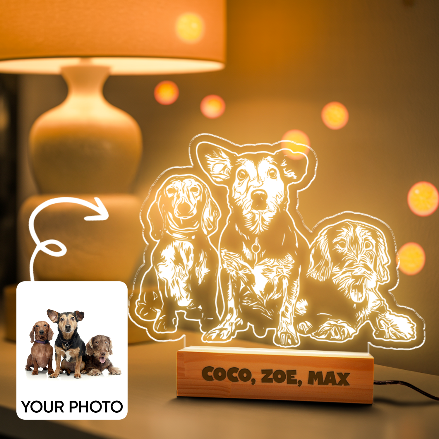 Custom Dog Portrait Night Light, Personalized Pet Lovers Gifts, Personalized Pet Memorial LED Night Light