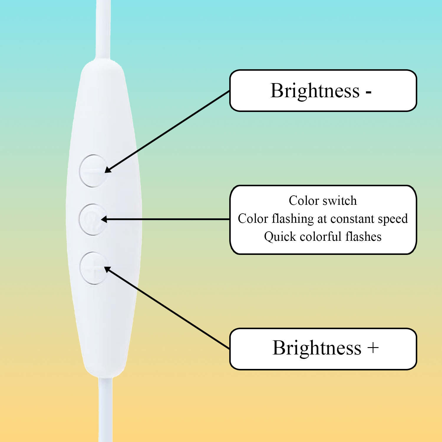 • Touch control: Easily switch between 7 colors — red, green, blue, yellow, cyan, pink, and white.