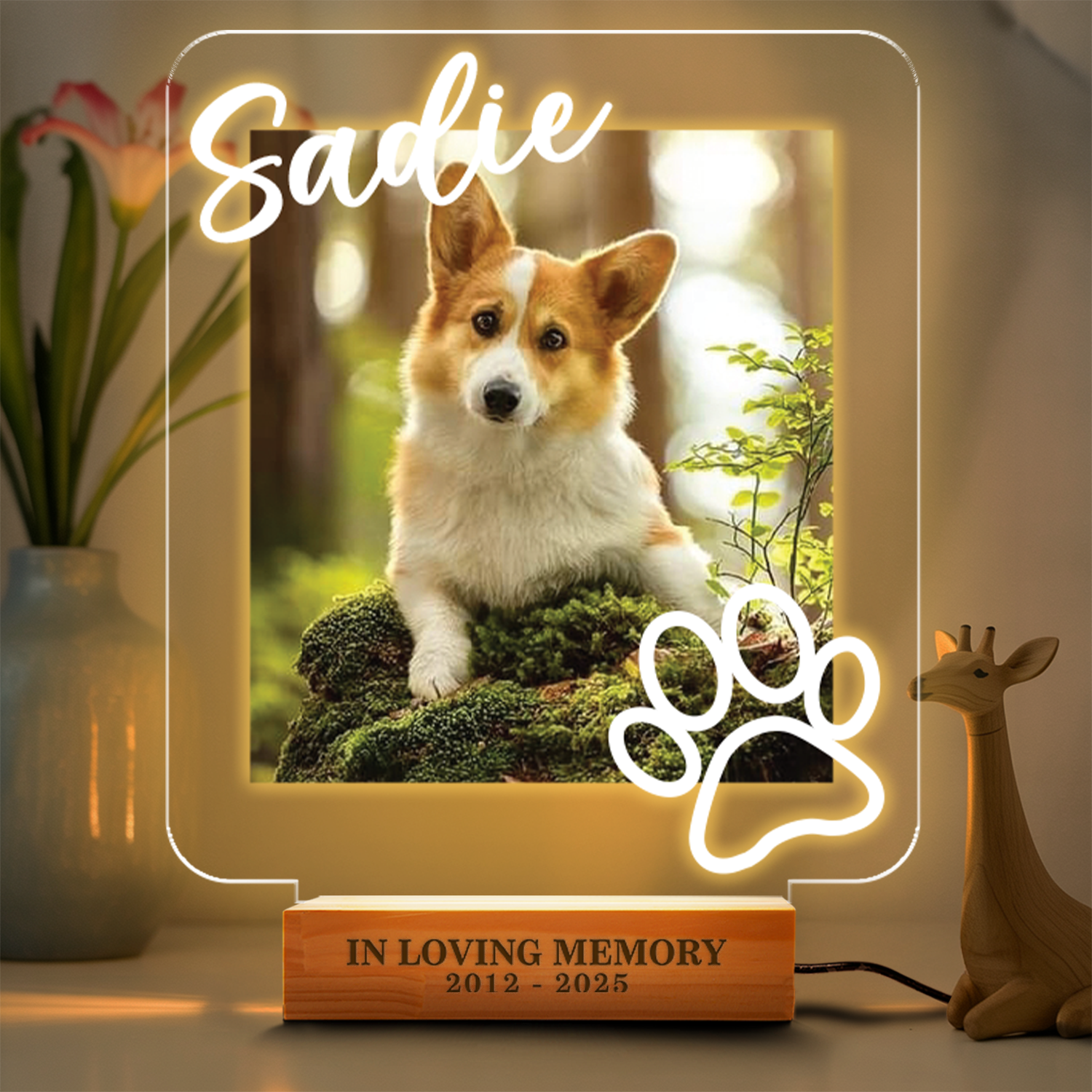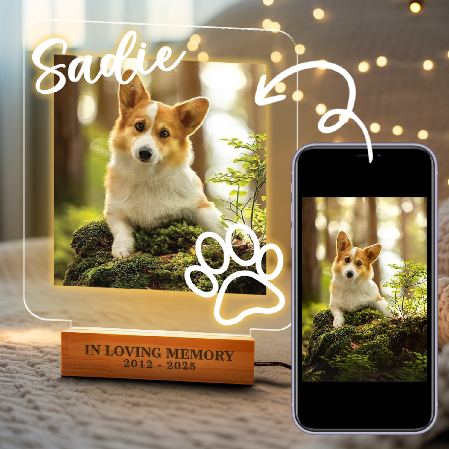 Custom Dog Portrait Night Light, Personalized Pet Lovers Gifts, Personalized Pet Memorial LED Night Light