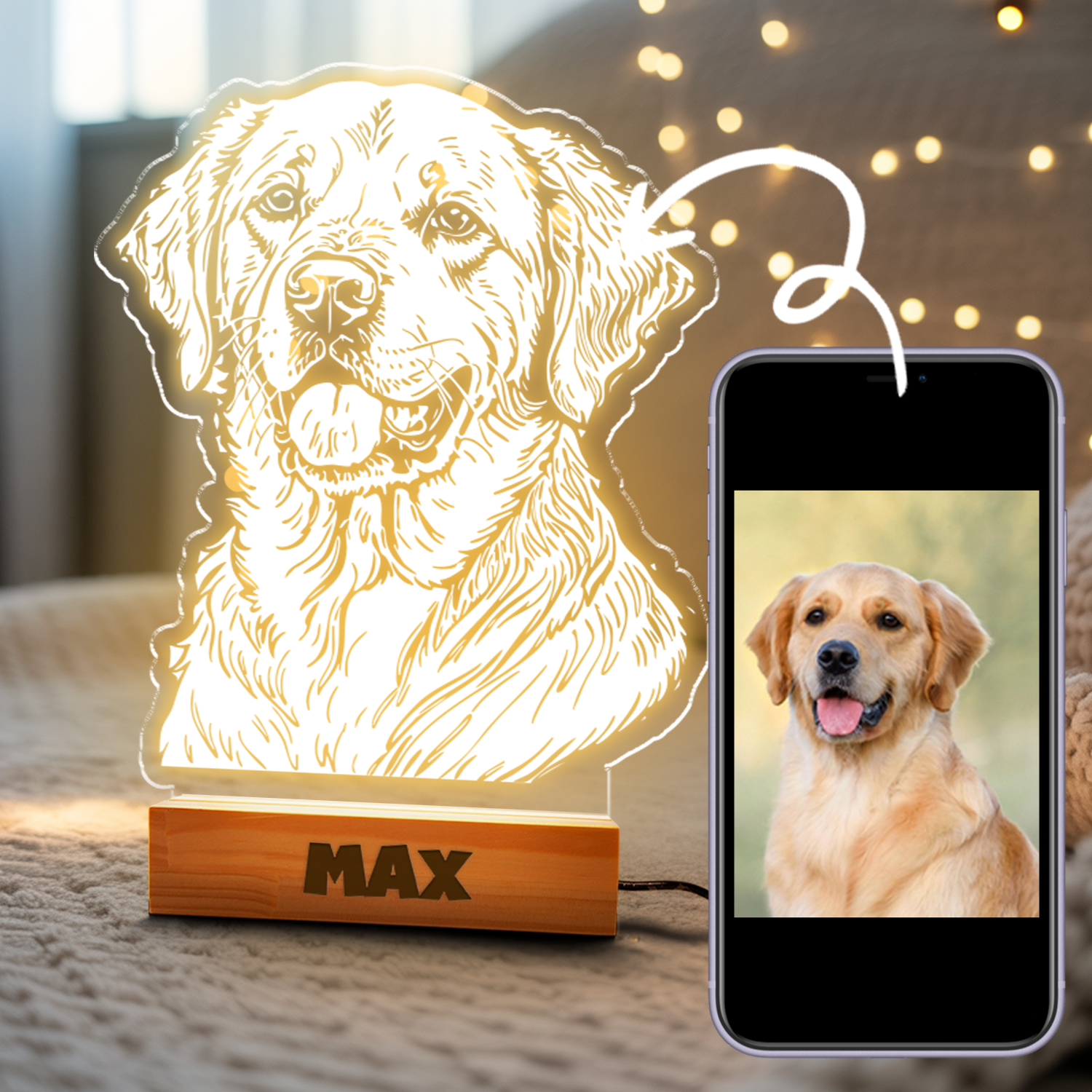 Custom Dog Portrait Night Light, Personalized Pet Lovers Gifts, Personalized Pet Memorial LED Night Light