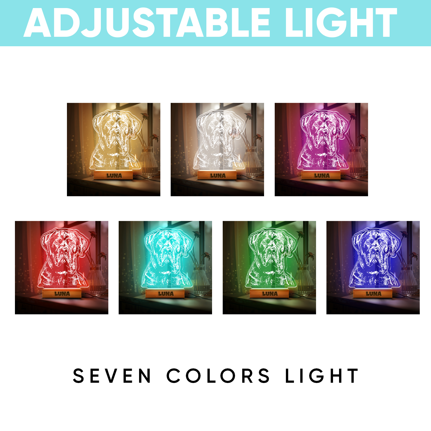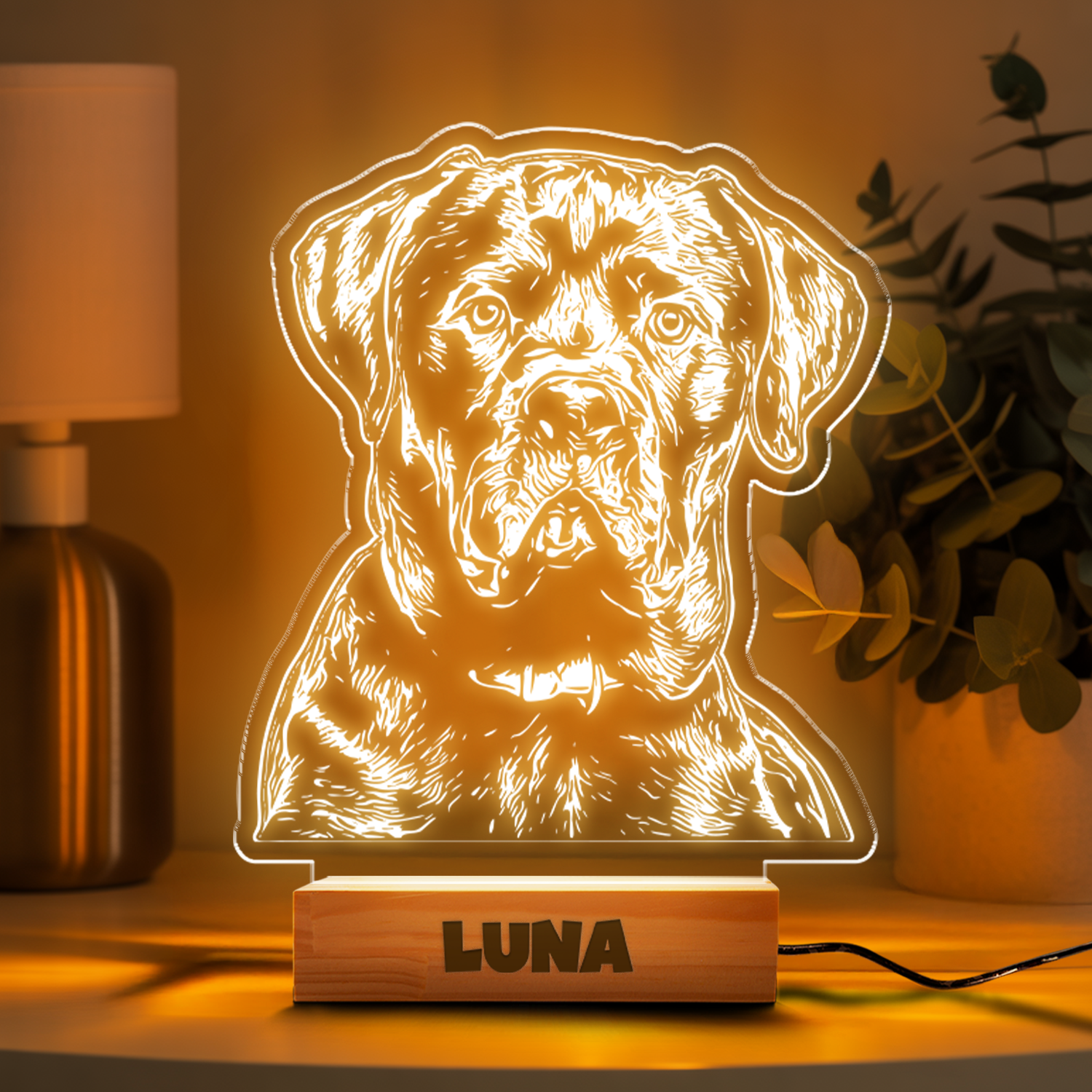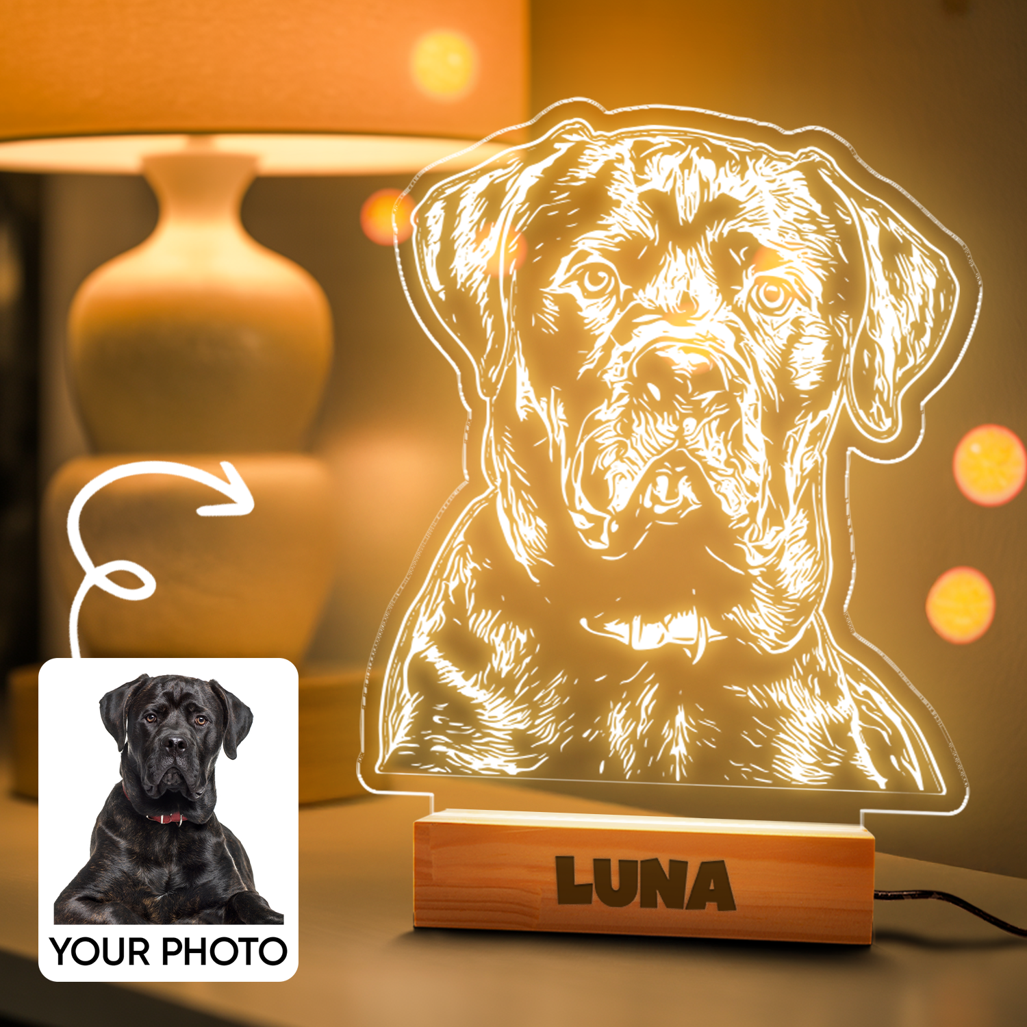 Custom Dog Portrait Night Light, Personalized Pet Lovers Gifts, Personalized Pet Memorial LED Night Light