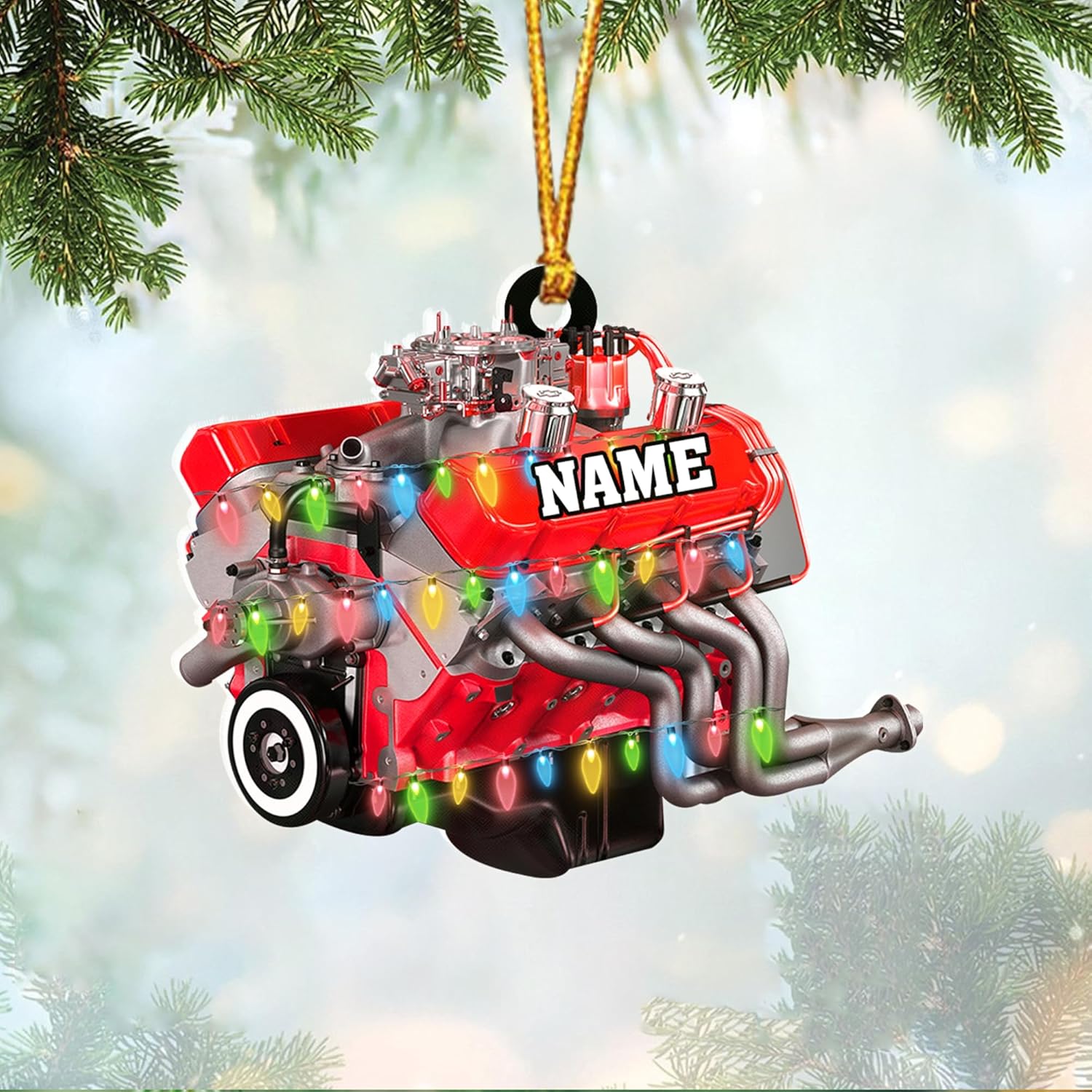 Custom Drag Racing Ornament – Personalized Hot Rod Engine Acrylic Christmas Decoration, Mechanic Gift for Car Lovers TDR17