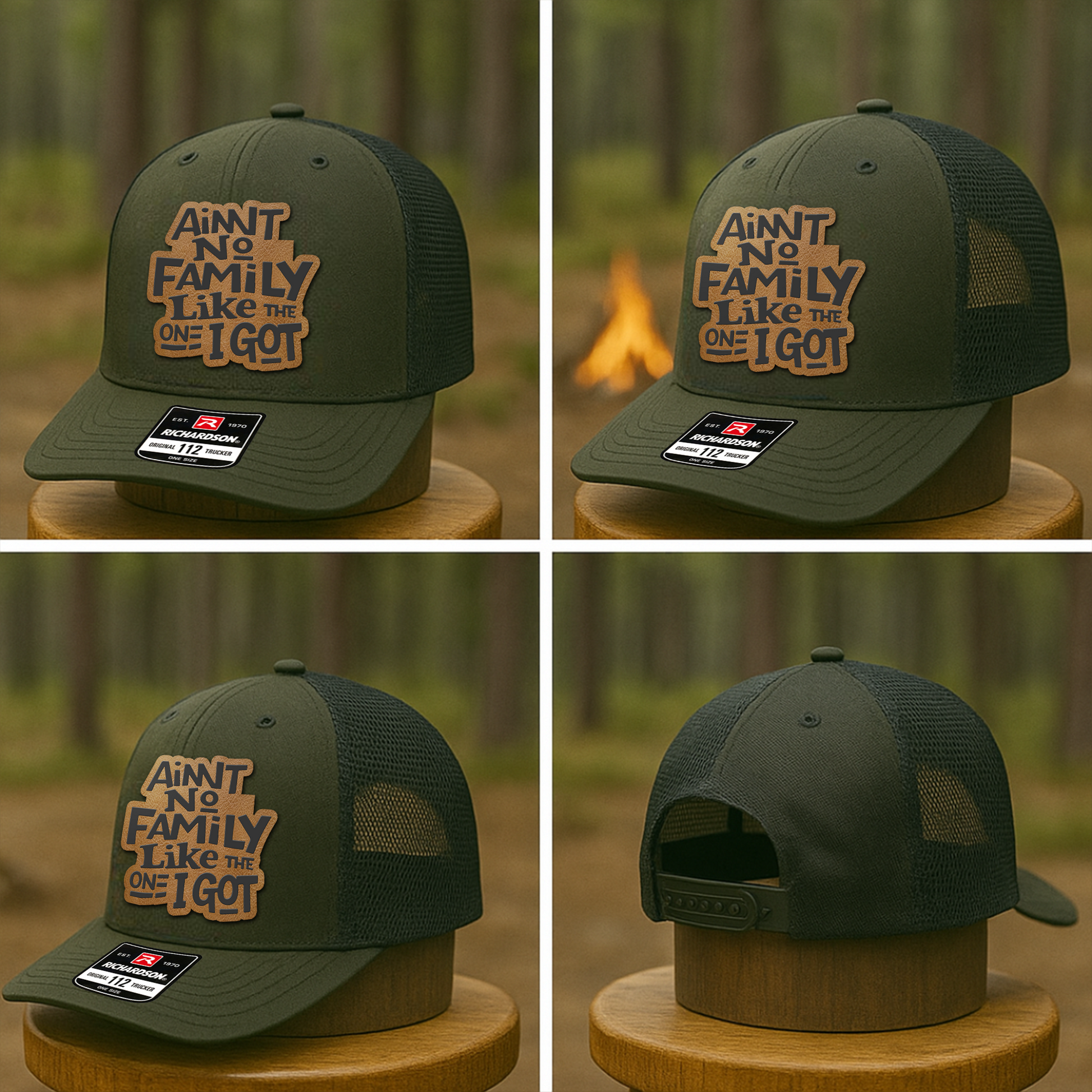 Family Trucker Hat – “Ain’t No Family Like the One I Got” Rustic Patch Cap for Reunions & Everyday Wear VHA163