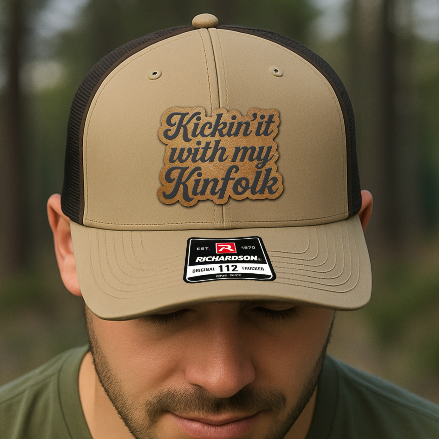 Family Trucker Hat – “Kickin’ It With My Kinfolk” Southern Style Patch Cap for Reunions & Everyday Wear VHA163