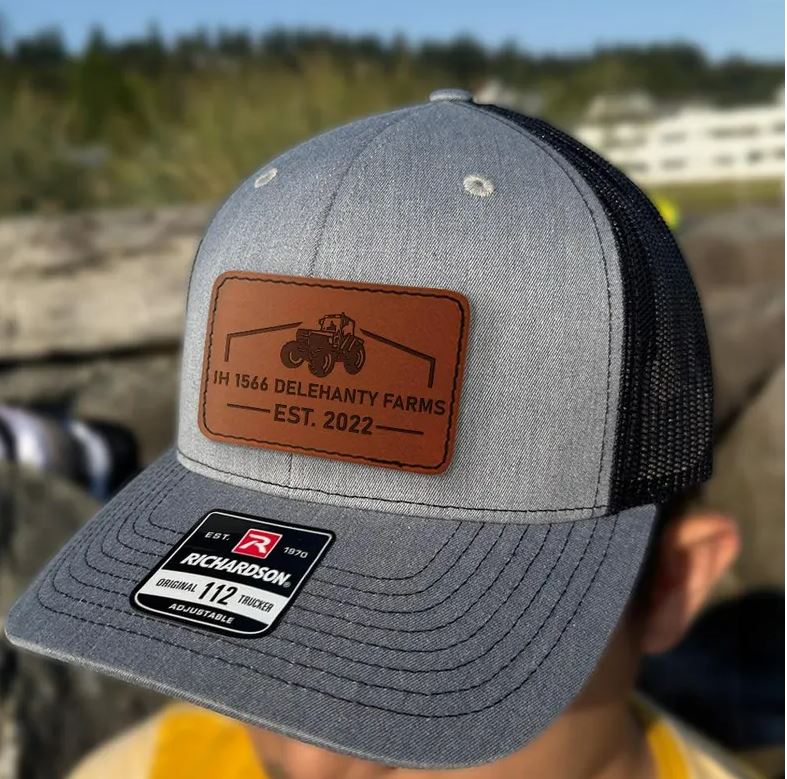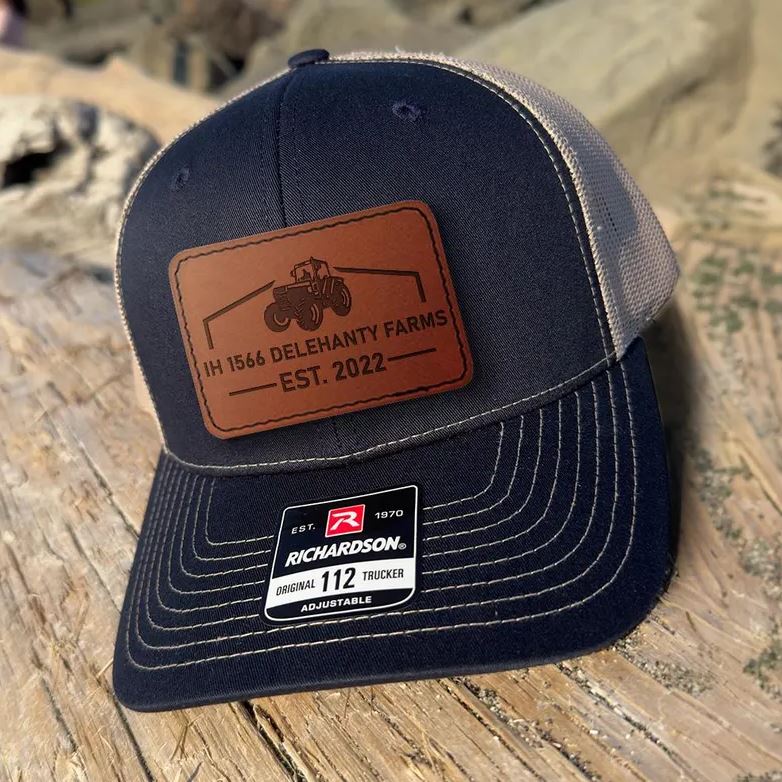 Custom Leather Patch Farm Name Hat | Custom Farm Name And Est Year Trucker Hat | Farmer Gifts