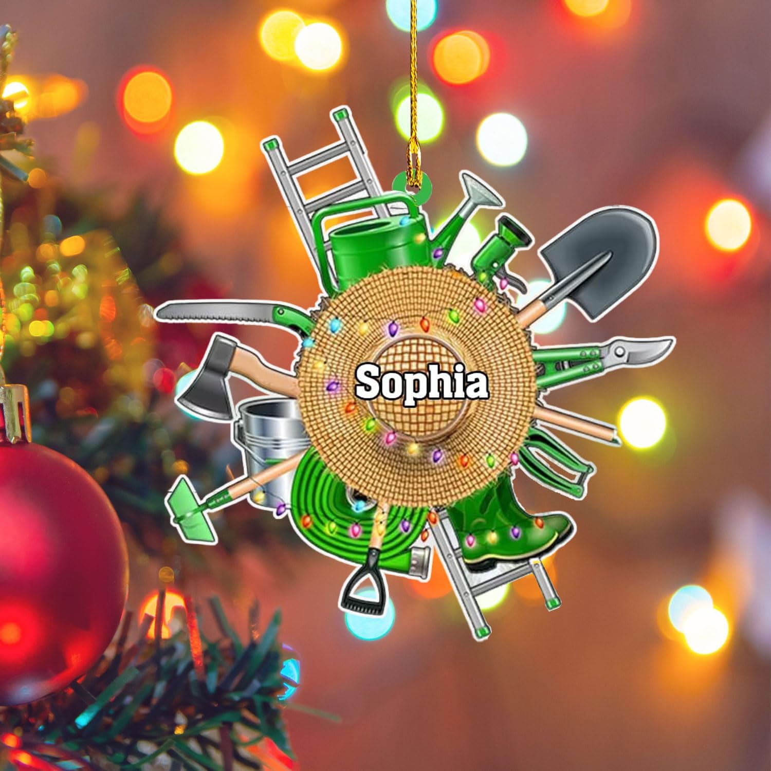 Custom Gardening Ornament with Name – Garden Tools Acrylic Christmas Decor for Gardeners & Green Thumb Lovers TG41