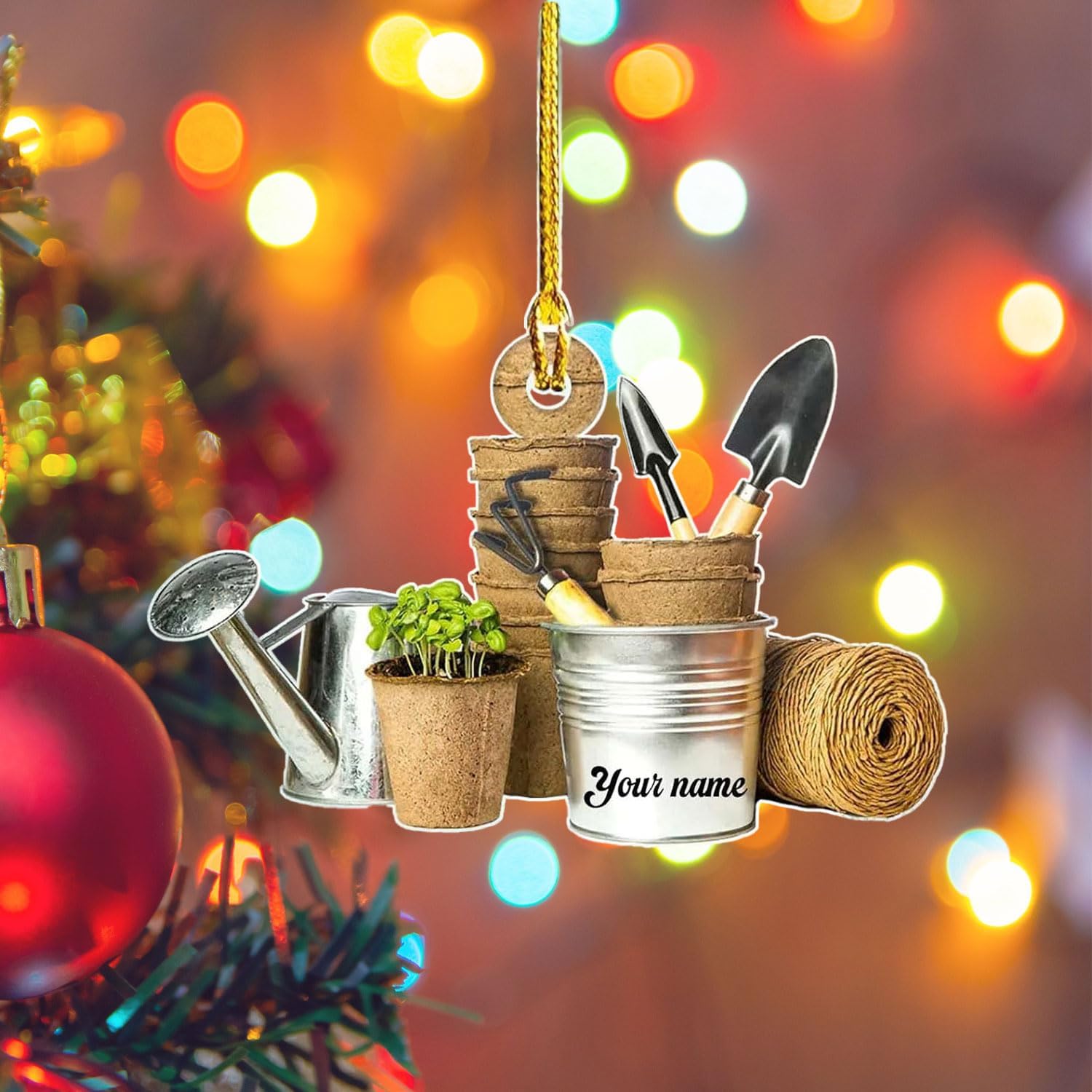 Custom Gardening Ornament with Name – Garden Tools Acrylic Christmas Decor for Gardeners & Green Thumb Lovers TG42