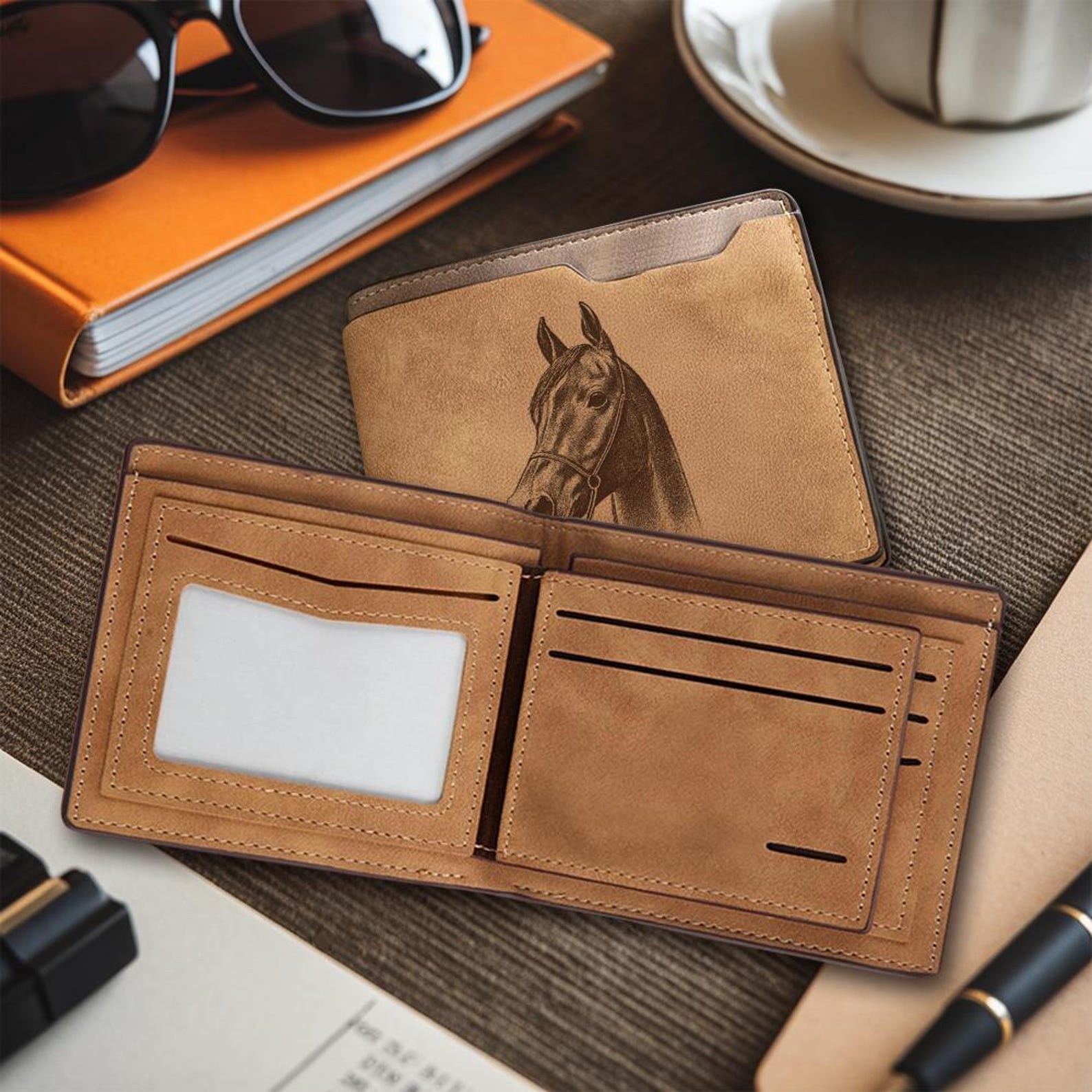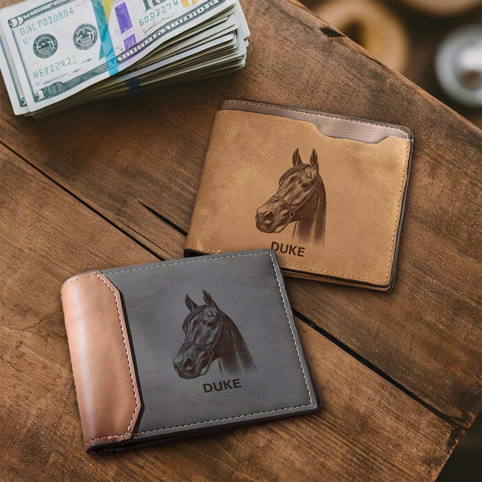 Custom Horse Photo Engraved Leather Wallet | Personalized Horse Photo Wallet | Horse Lover Gift