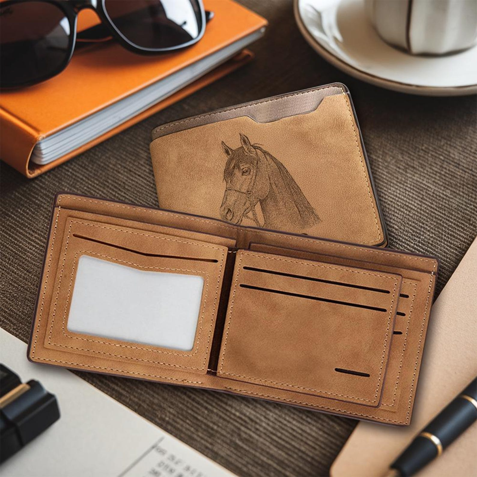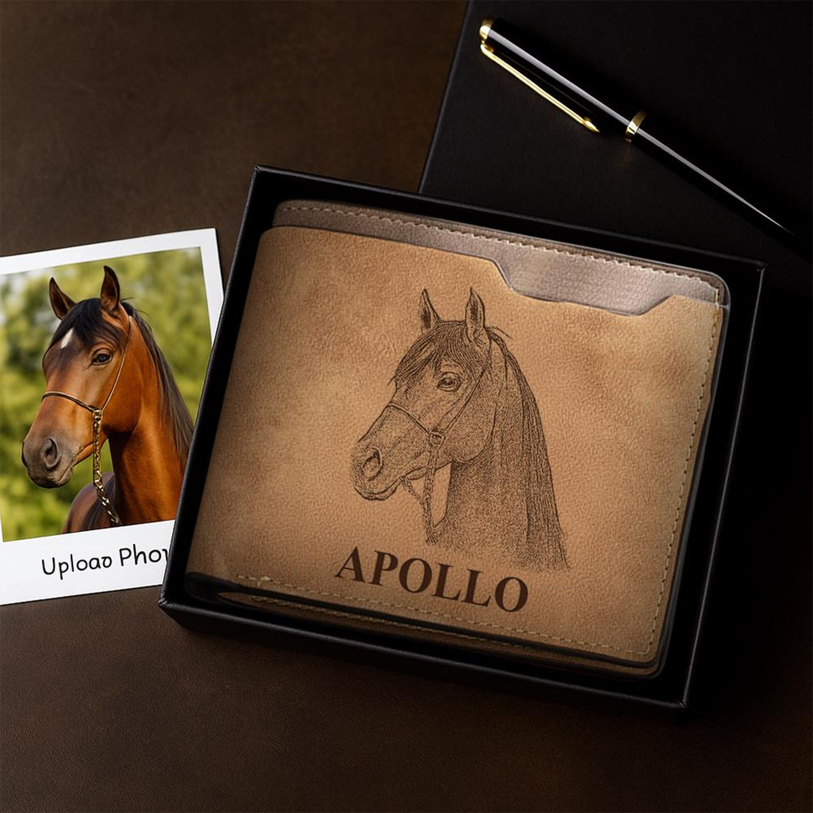 Custom Horse Photo Engraved Leather Wallet | Personalized Horse Photo Wallet | Horse Memorial Gift