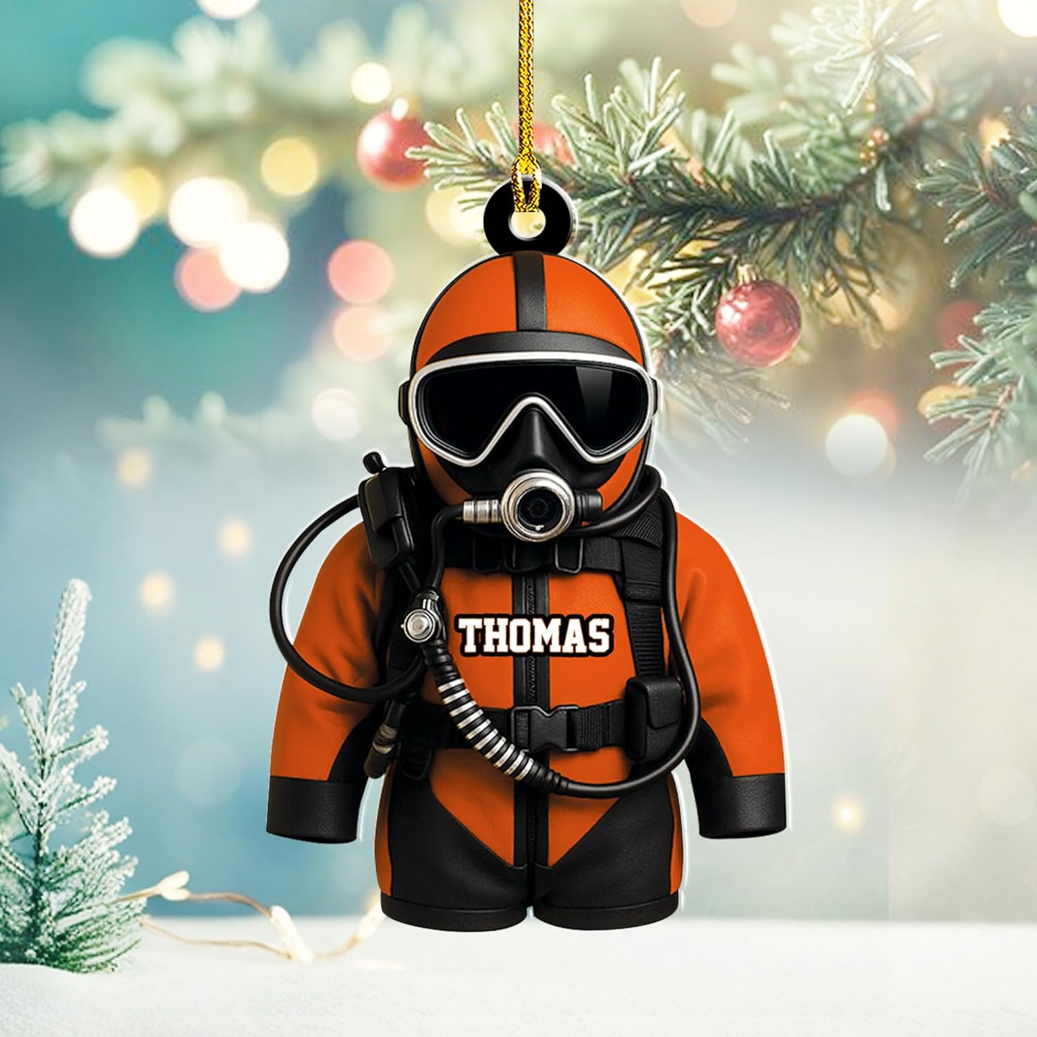 Custom Name Diving Ornament – Personalized Acrylic Scuba Diver Christmas Keepsake, Underwater Gift TSD22