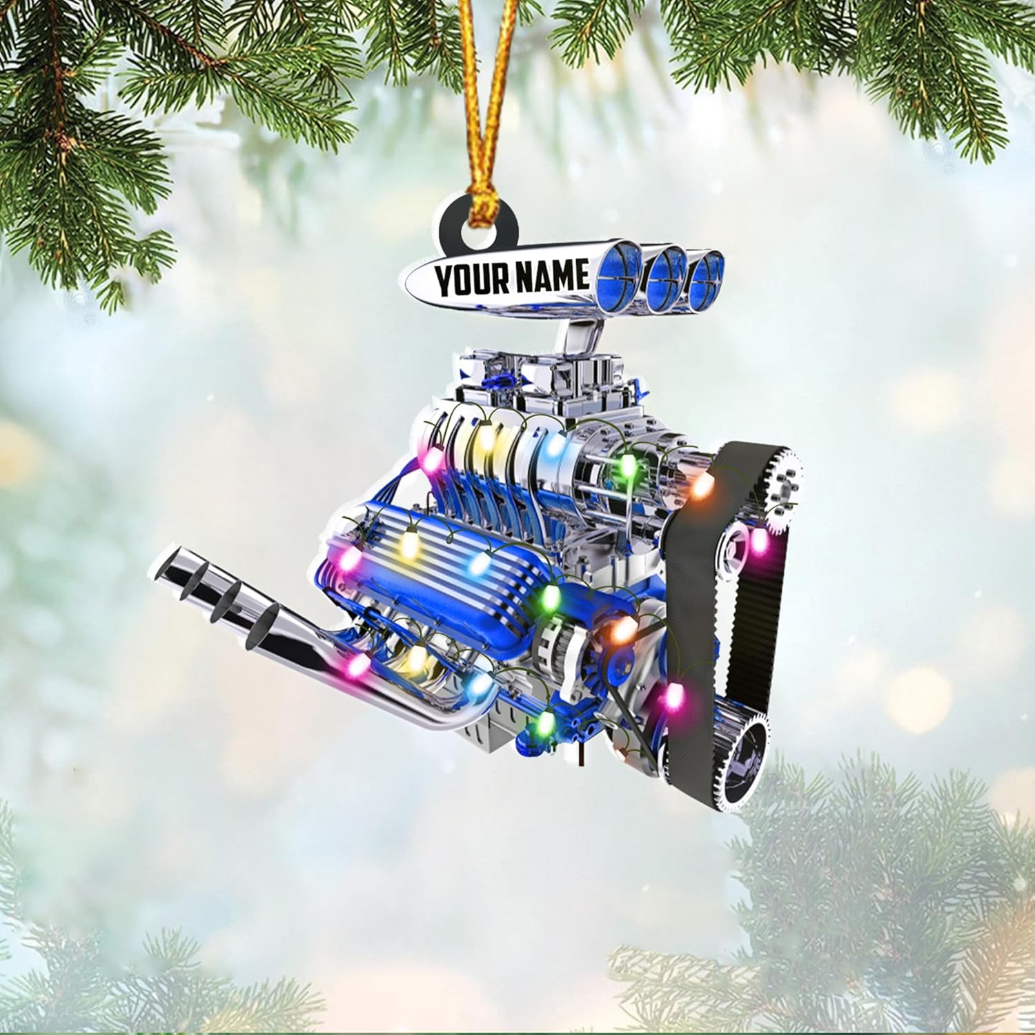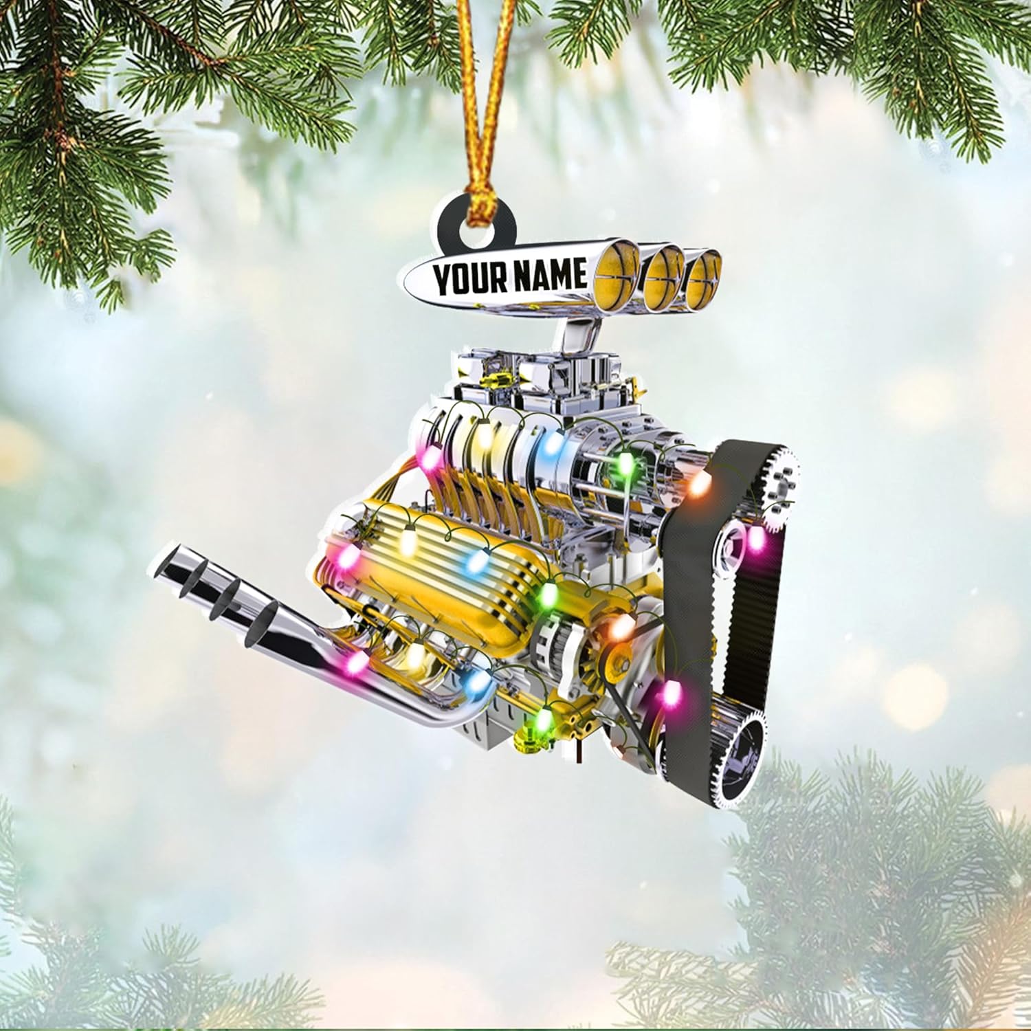Custom Name Drag Racer Ornament – Personalized Acrylic Engine Design, Power Tool Themed Christmas Gift TDR20