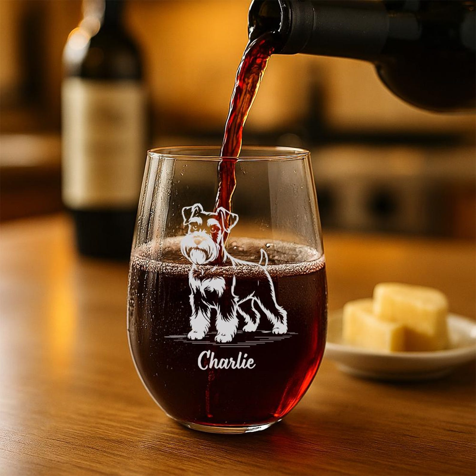 Custom Name Miniature Schnauzer Beer Can Glass | Etched Miniature Schnauzer Silhouette Beer Can Glass | Gift for Dog Lovers