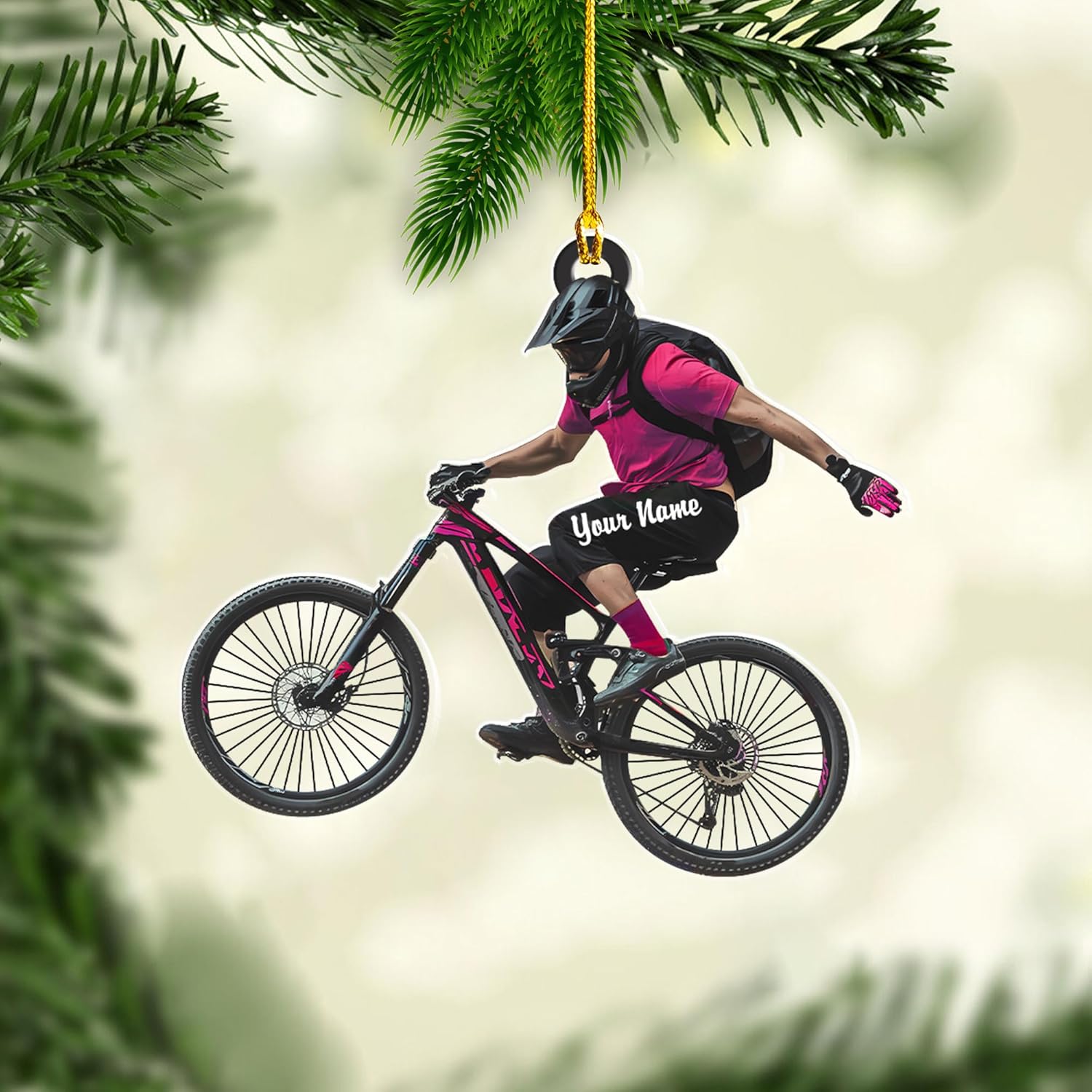 Custom Name Mountain Biking Ornament – Personalized Acrylic Cycling Christmas Gift, Sport Holiday Keepsake TB25