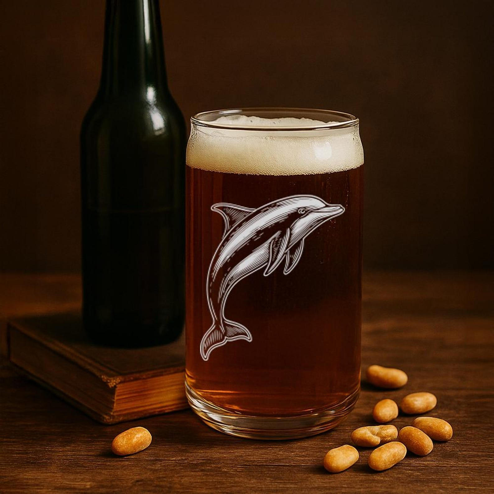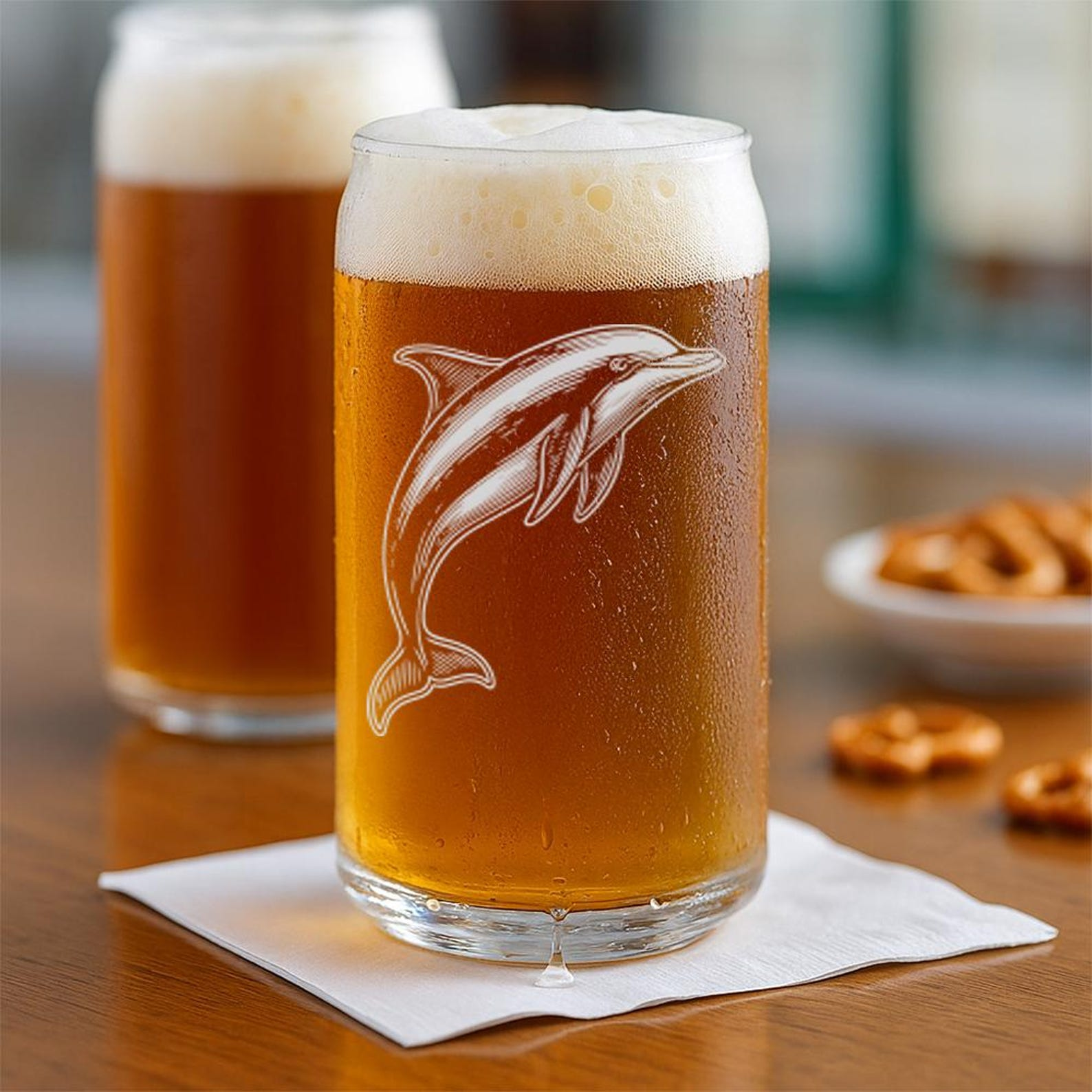 Dolphin Beer Can Glass | Etched Dolphin Sihouette Beer Can Glass | Gift for Ocean Lovers