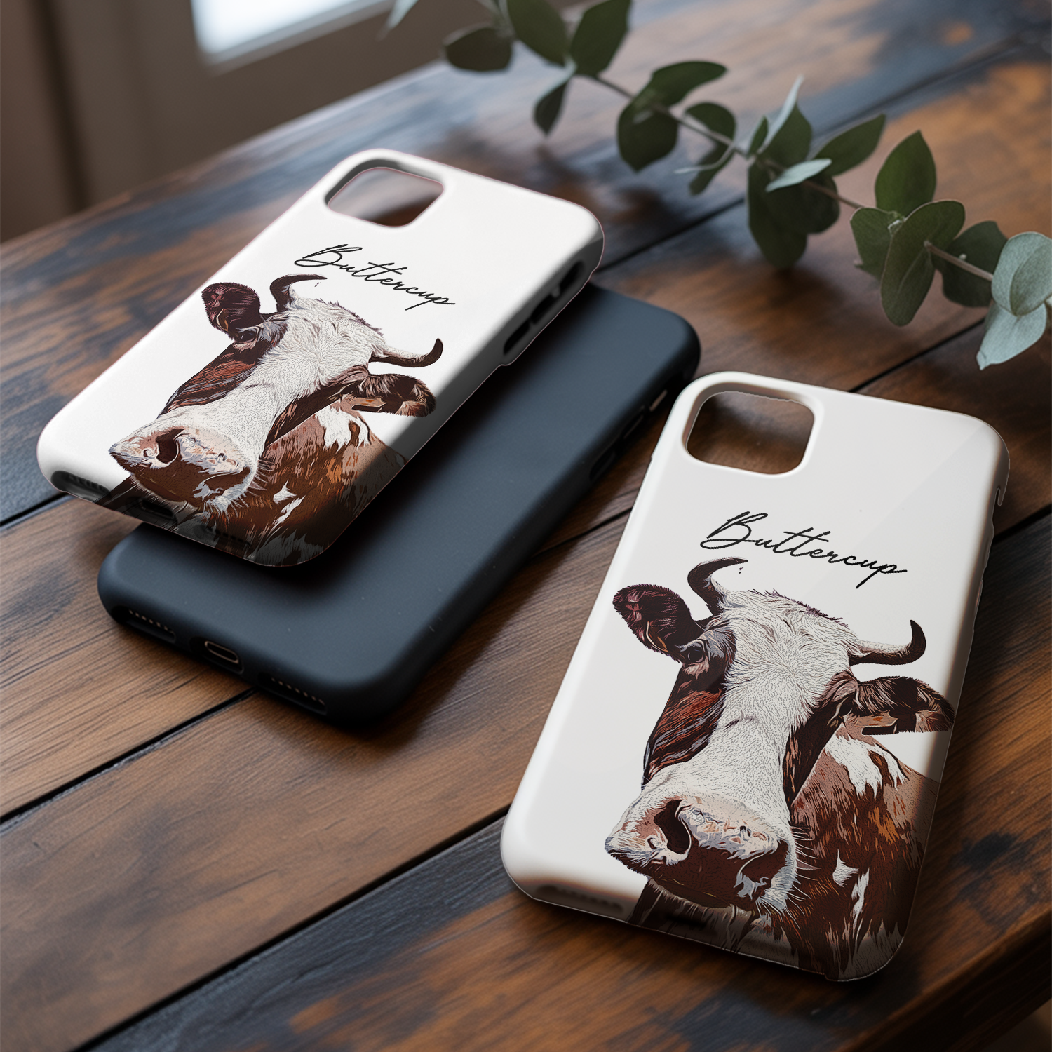 Custom Pet Photo Phone Case, Custom Cow Face Phone Case, Gift for Cow Lover, Pet Memorial, Animal Lovers TNGP014