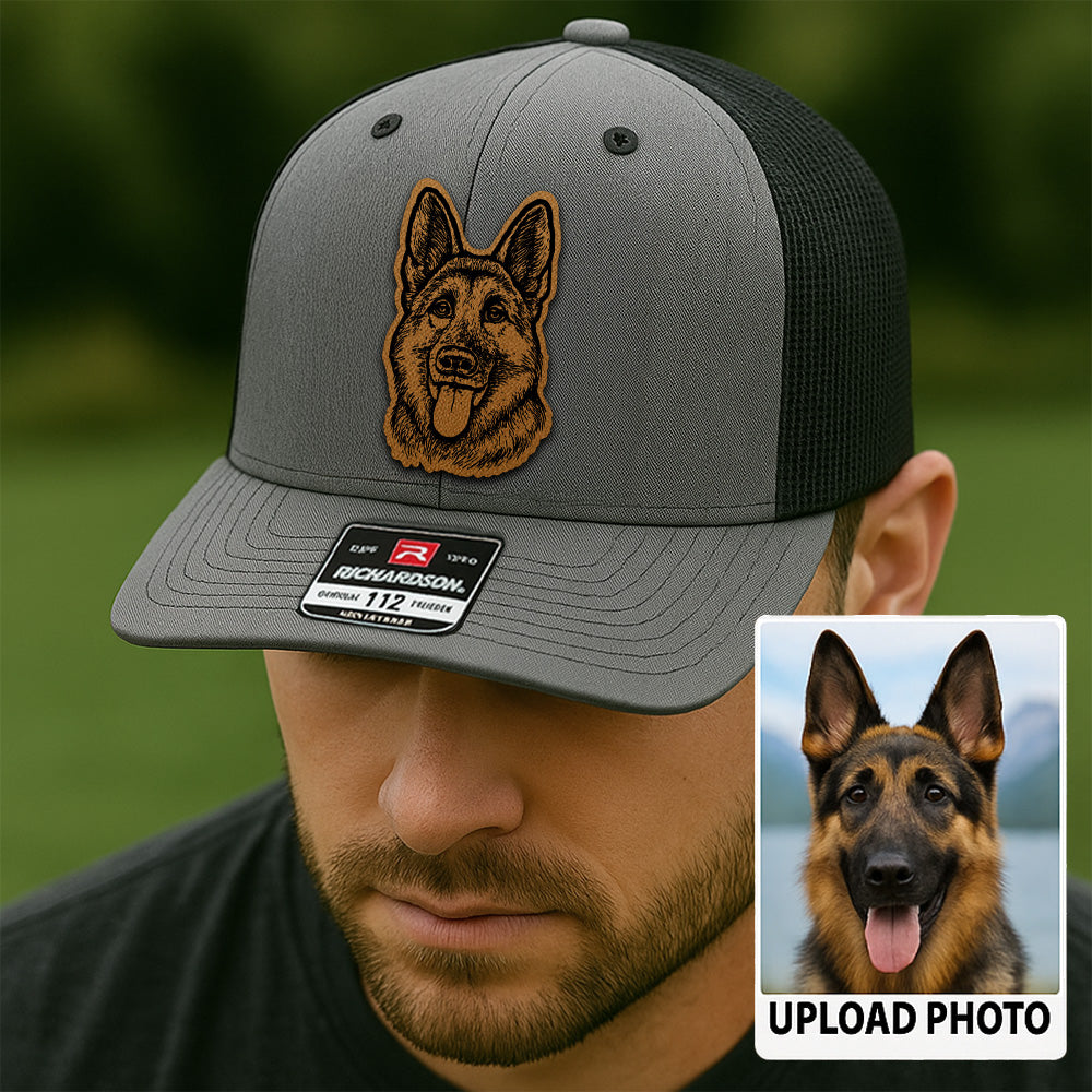 Custom Pet Photo Trucker Hat – Personalized Leather Patch Hat – Dog Owner Gift – Custom Pet Hat PH009