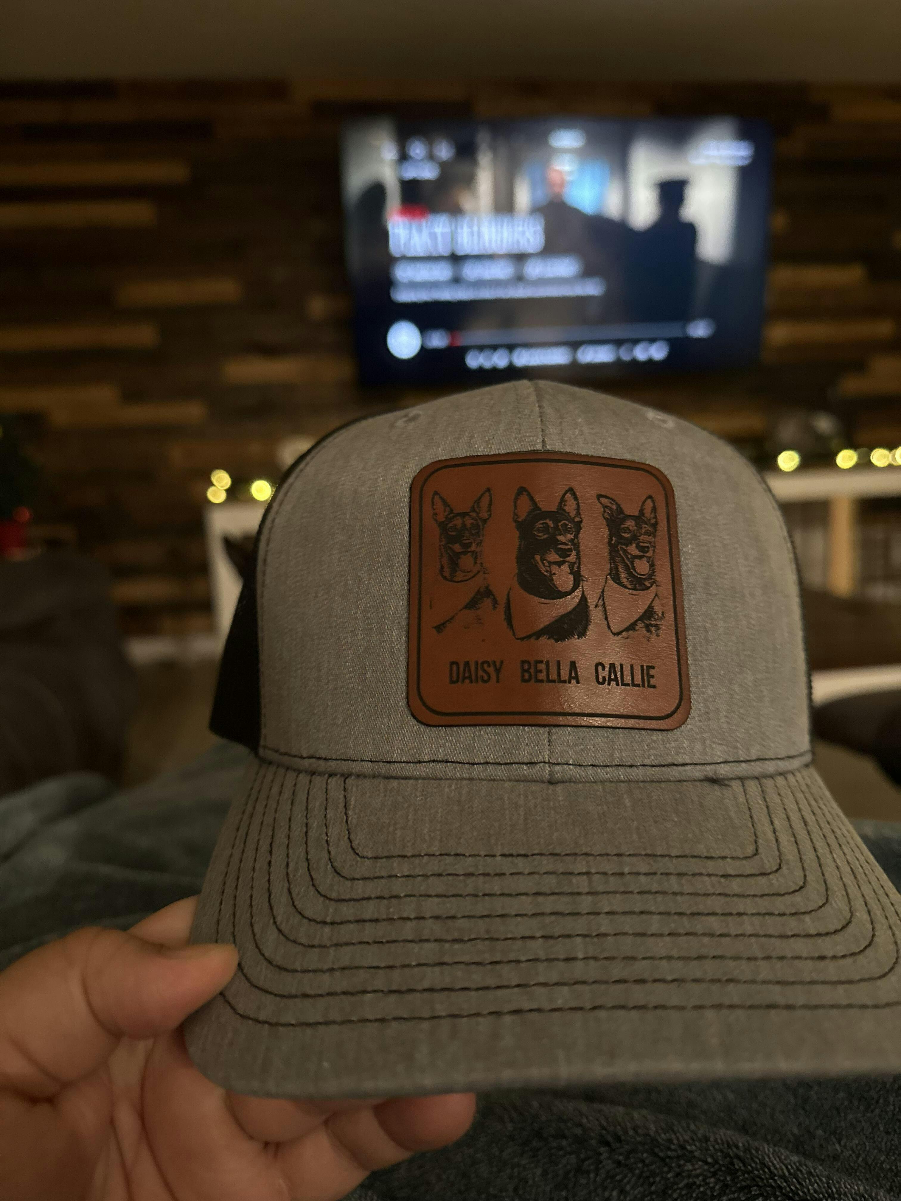 Custom Pet Photo Trucker Hat – Personalized Leather Patch Hat – Dog Portrait Gift – Custom Pet Face Hat P99A10