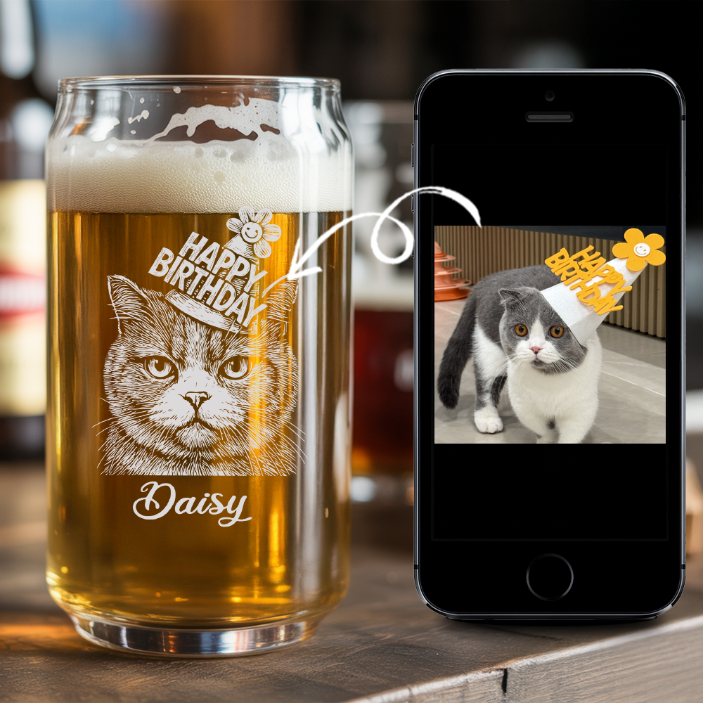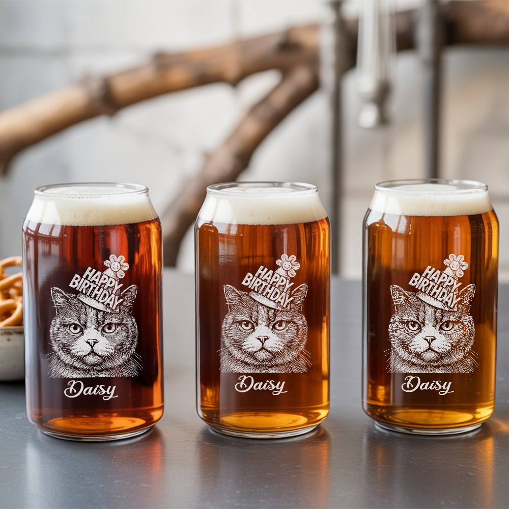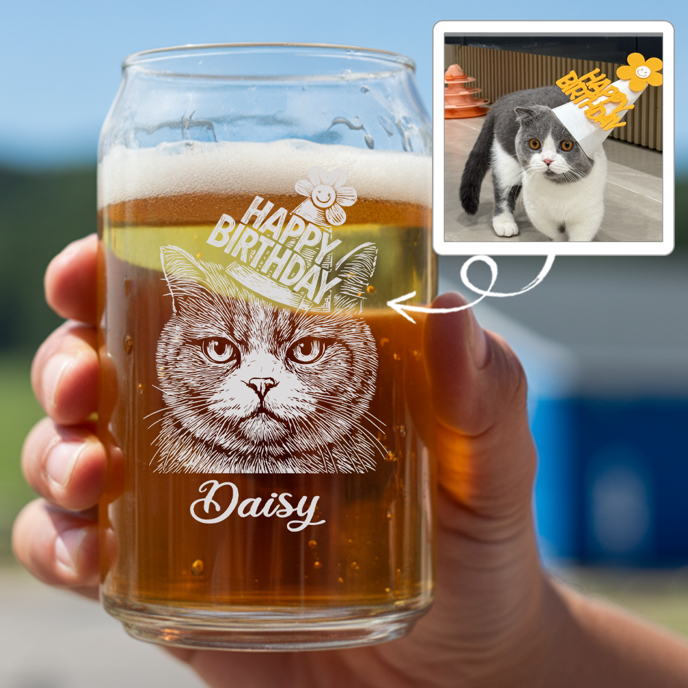Custom Photo Cat Poitrait Beer Glasses | Personalized Cat Photo Beer Can Glasses | Cat Lover Gift TNNGL31
