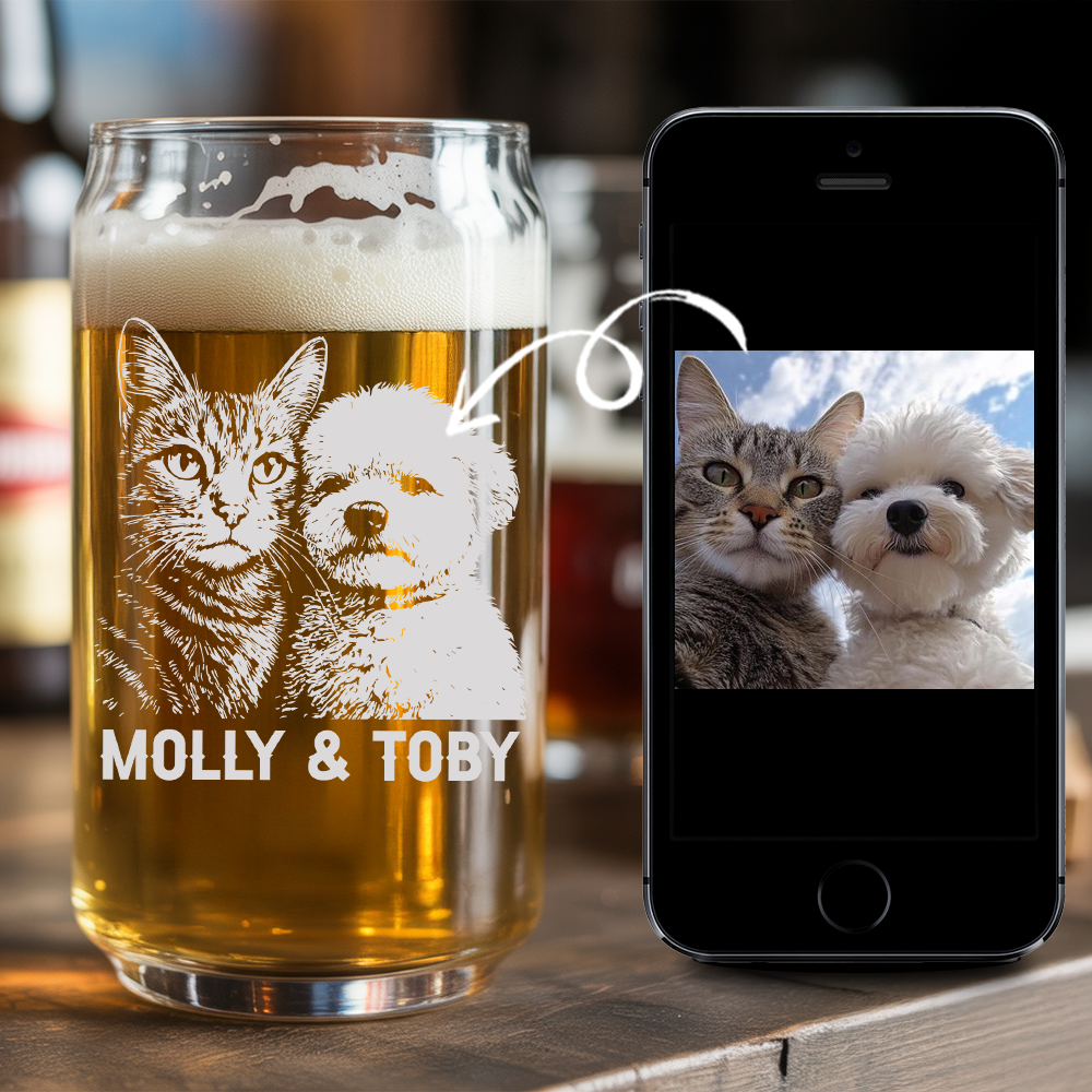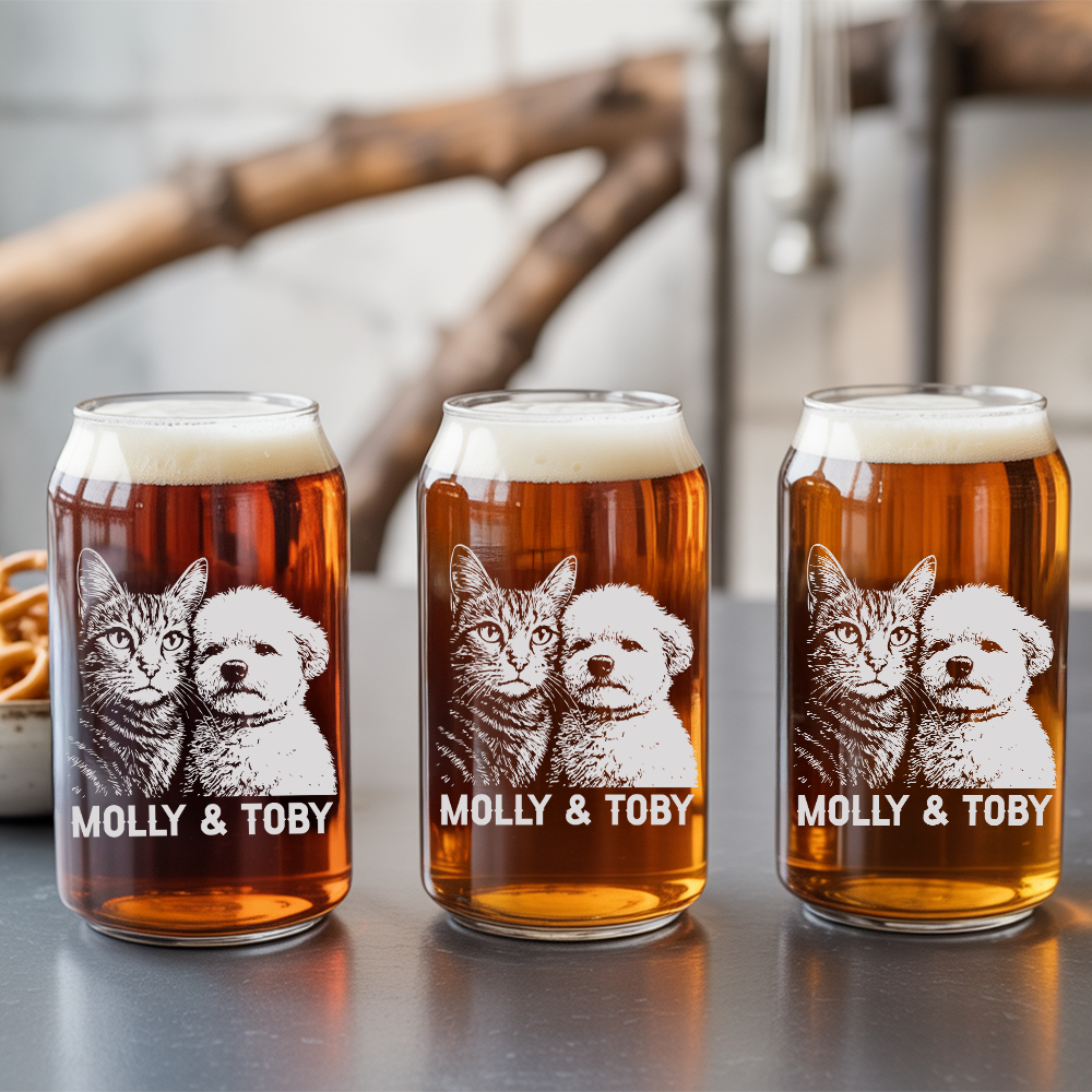 Custom Photo Pet Beer Glasses Using Pet Photo | Personalized Pet Beer Can Glasses | Custom Pet Photo Glass TNNGL34