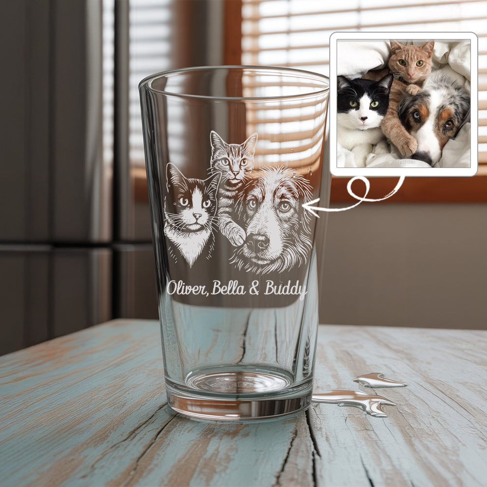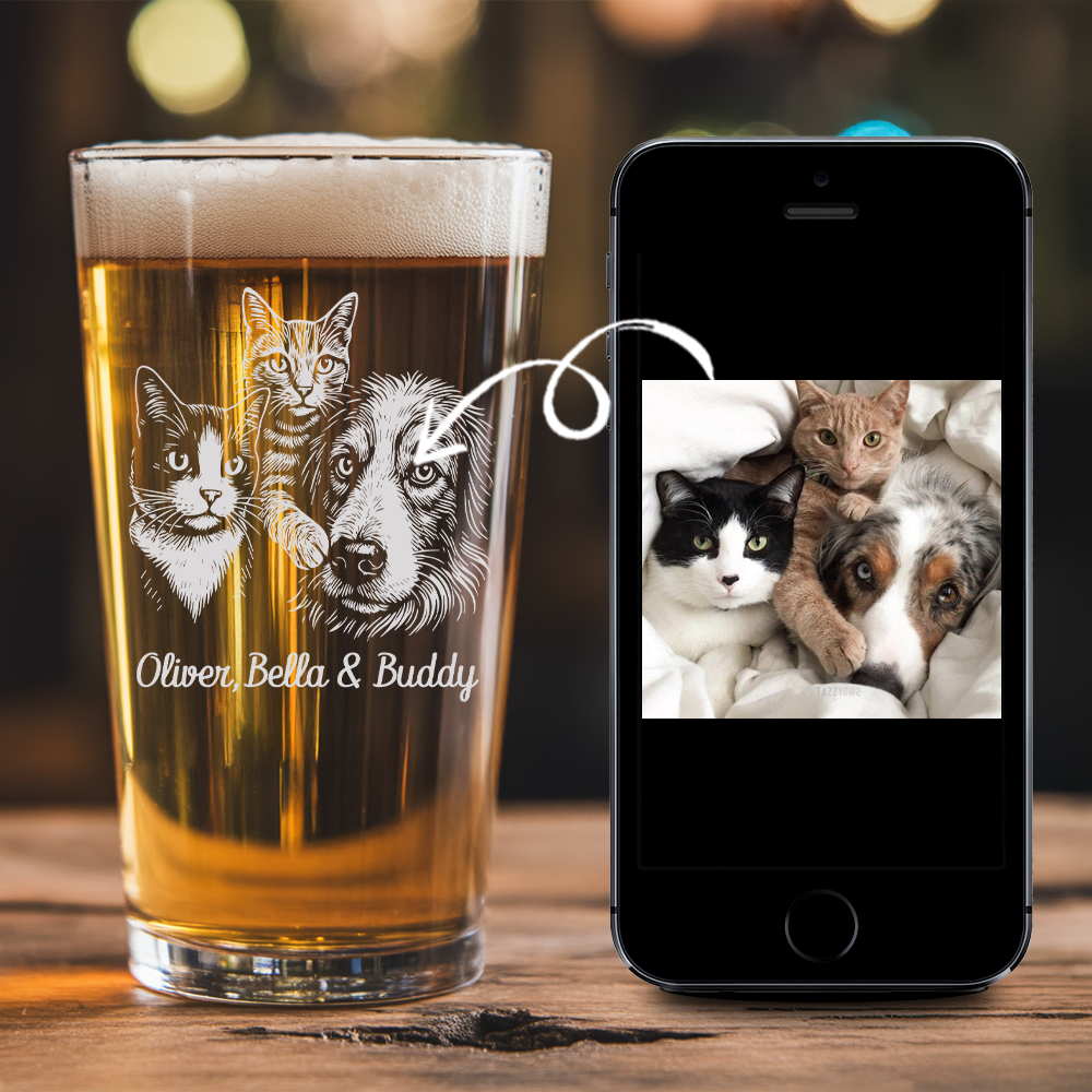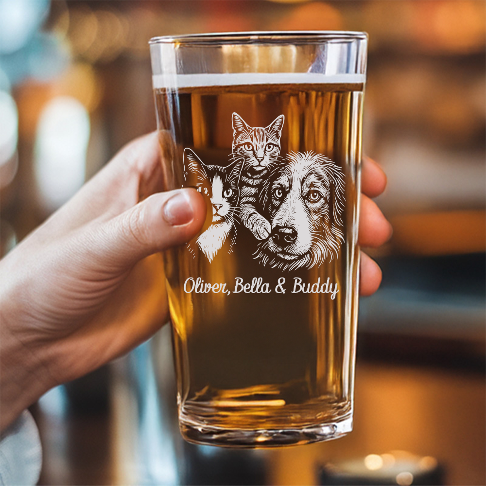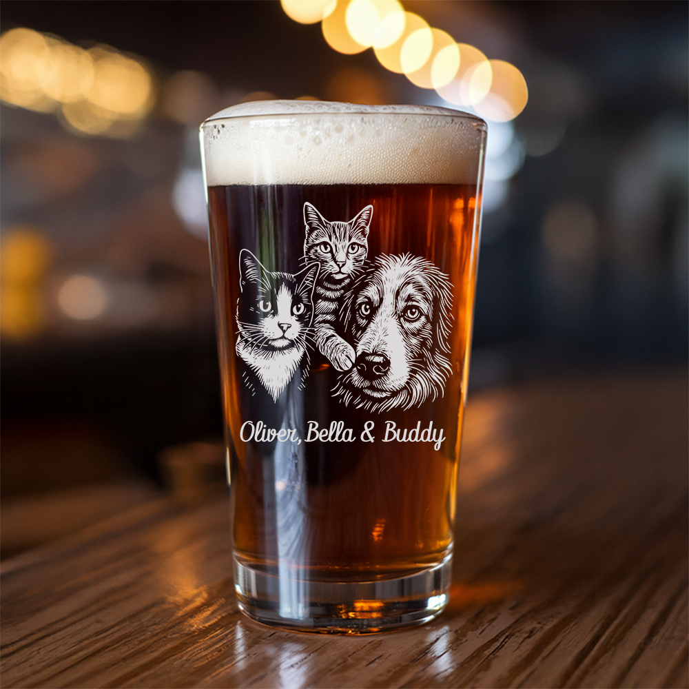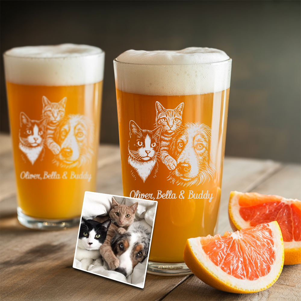 Custom Photo Pet Beer Glasses | Custom Pet Pint Glasses | Personalized Pet Photo Beer Glass TNNGL26