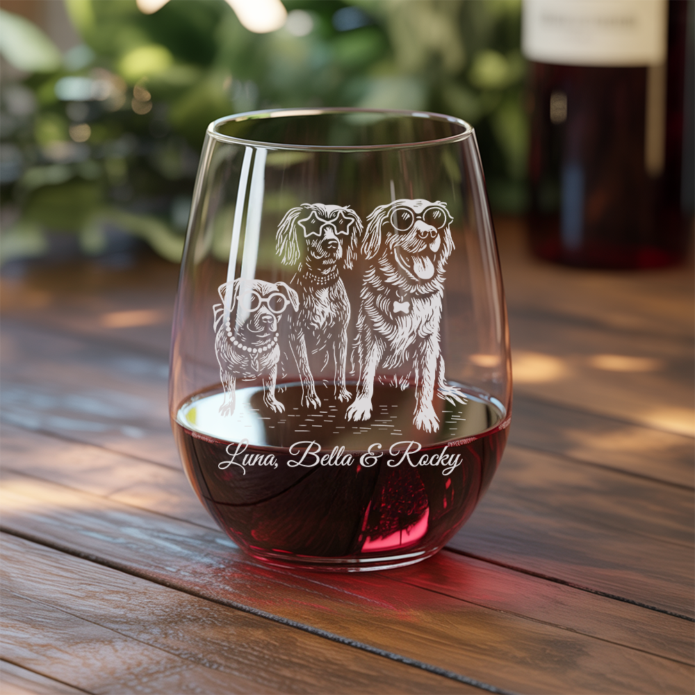 Custom Photo Dog Stemless Wine Glass | Personalized Pet Photo Stemless Wine Glass | Pet Lover Gift TNNGL13