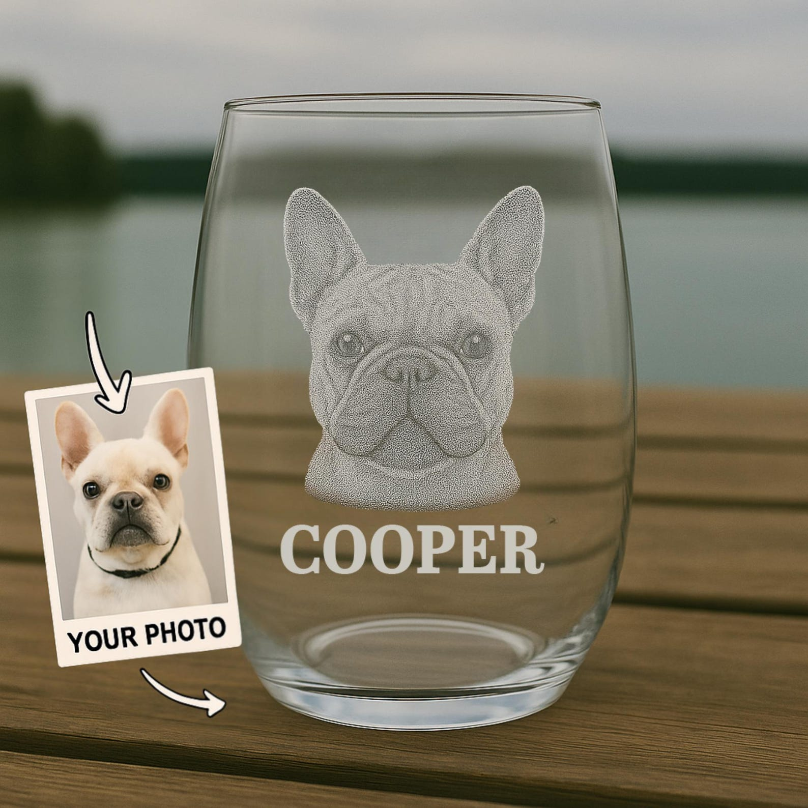 Custom Photo Dog Stemless Wine Glass | Personalized Pet Photo Wine Glass | Dog Lover Gift