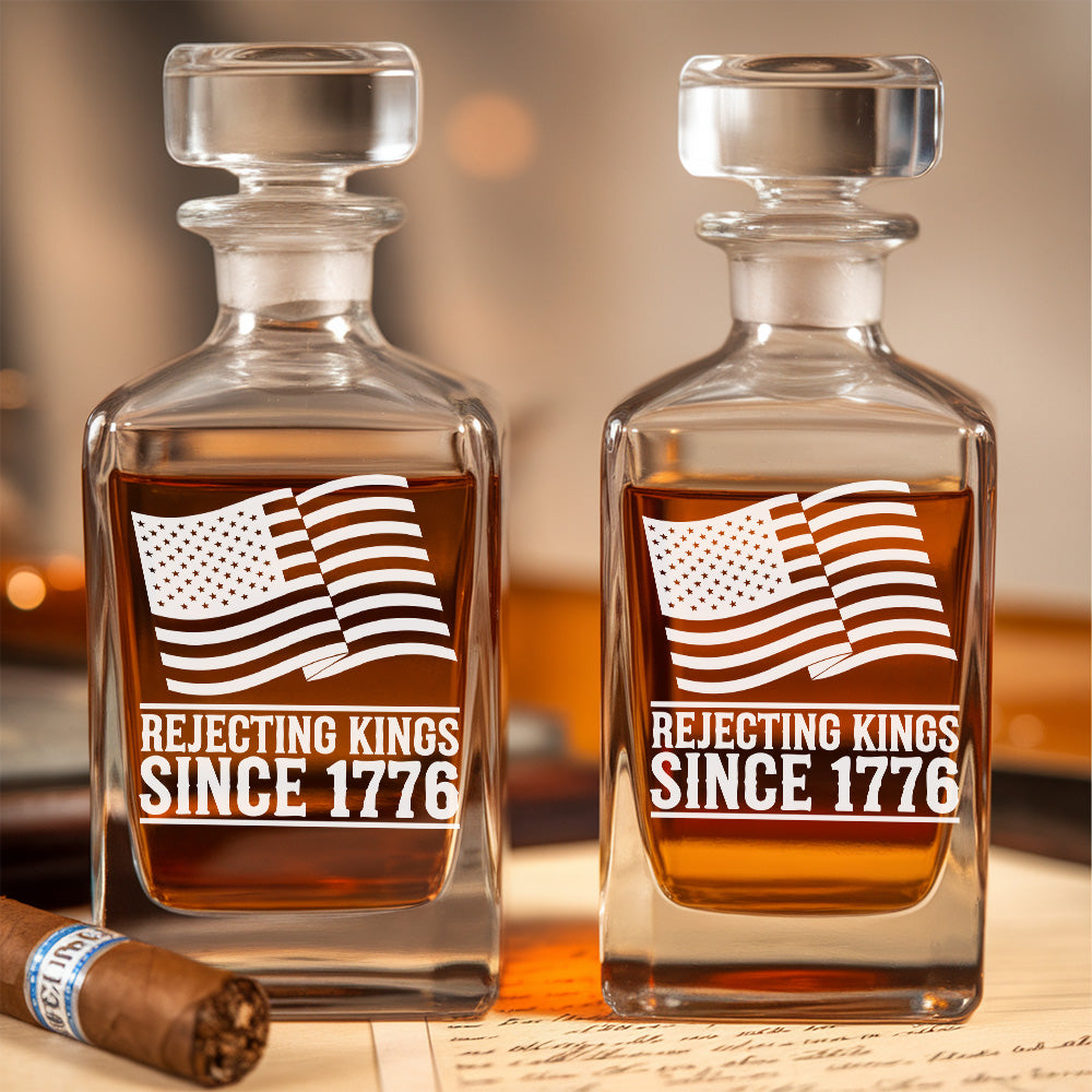 Celebrate freedom the founding fathers’ way with our “Rejecting Kings 1776” Whiskey Glass & Decanter Set – a bold tribute to liberty, independence, and the American spirit. Featuring a classic engraved 1776 design and the rebellious phrase “Rejecting Kings”, this set is made for those who raise their glass to freedom, not royalty.