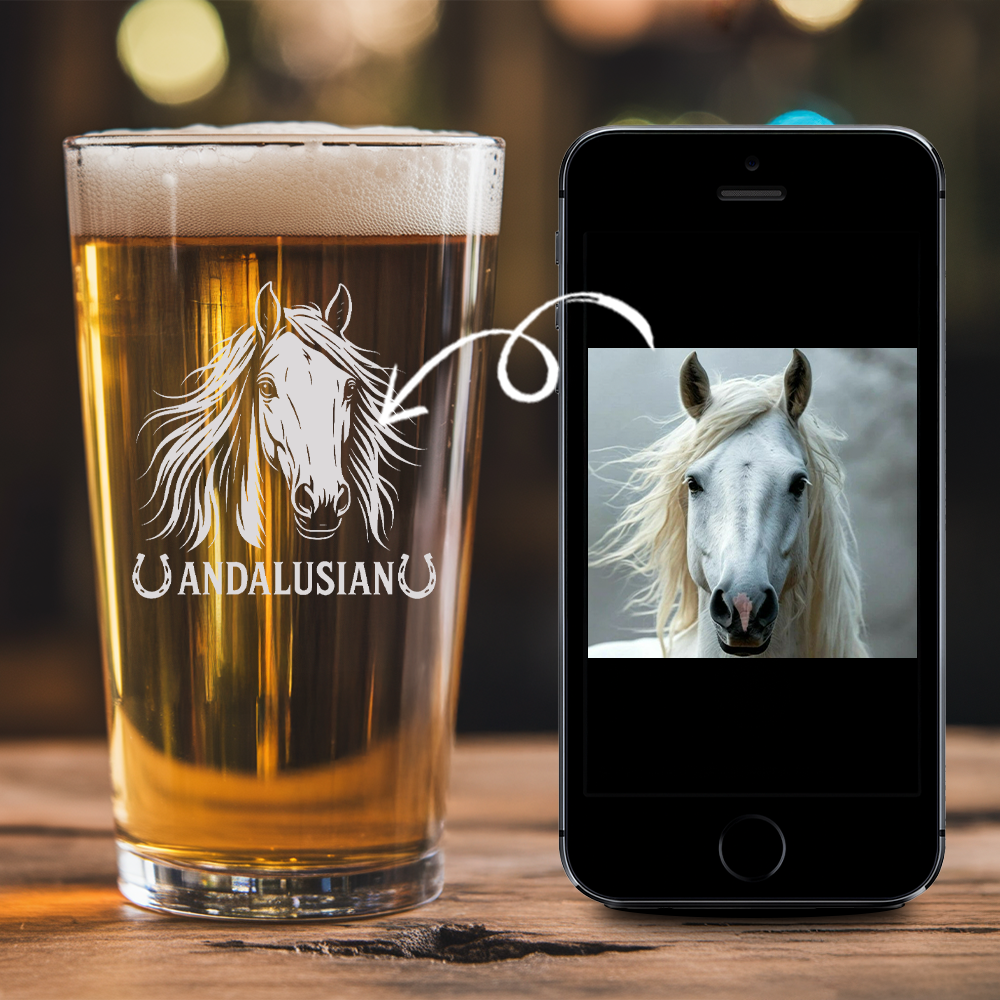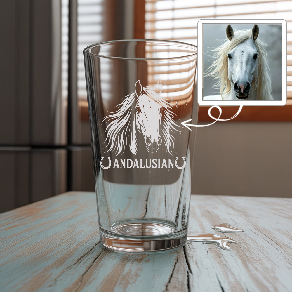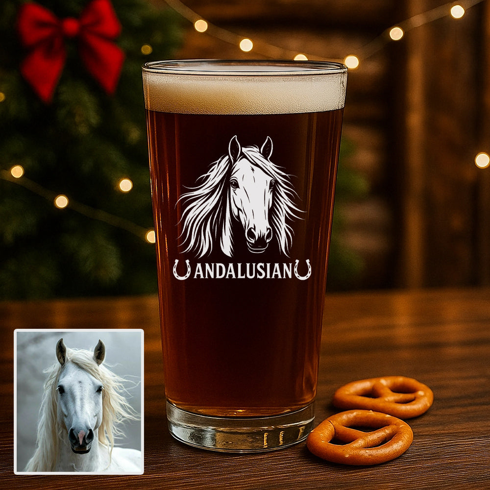 Custom Photo Horse Pint Glass – Unique Gift for Equestrians and Horse Owners THUC99H02