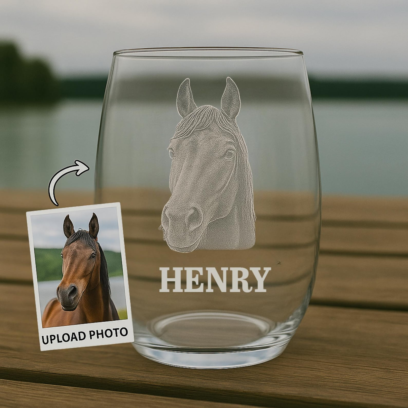 Custom Photo Horse Stemless Wine Glass | Personalized Horse Photo Stemless Wine Glass | Gift For Horse Lover
