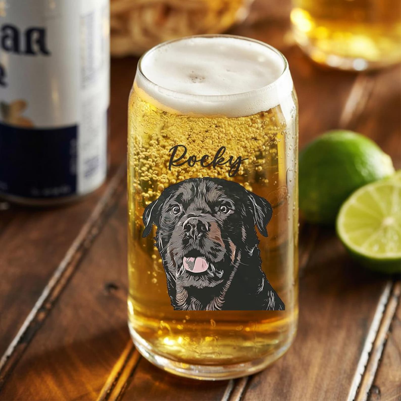 Custom Photo Pet Portrait Photo Beer Can Glass – Personalized Pet Portrait Photo – Gift for Dog Lovers