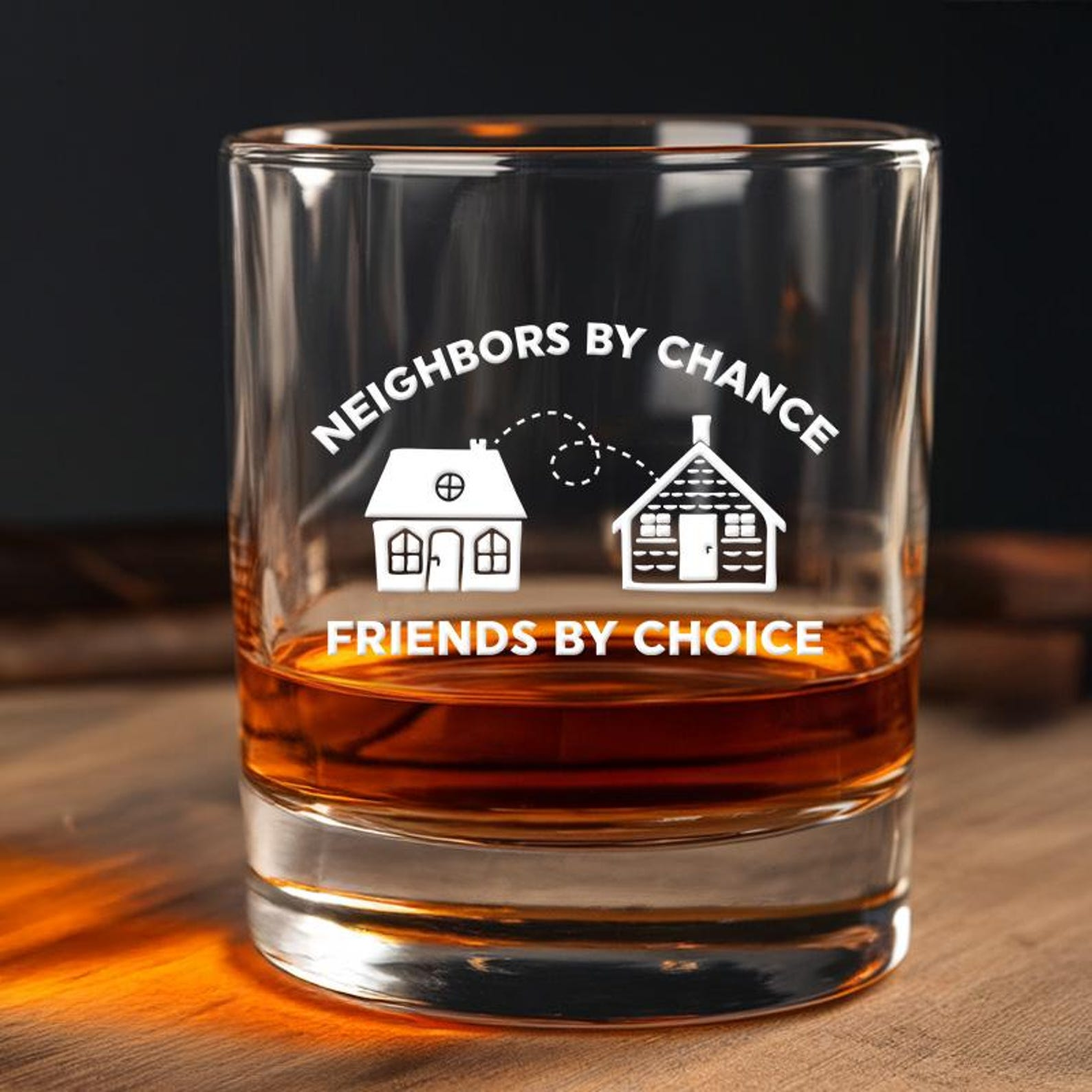 Neighbors By Chance Friends By Choice Engraved Whiskey Glass | Funny Gift Idea | Gift For Friend