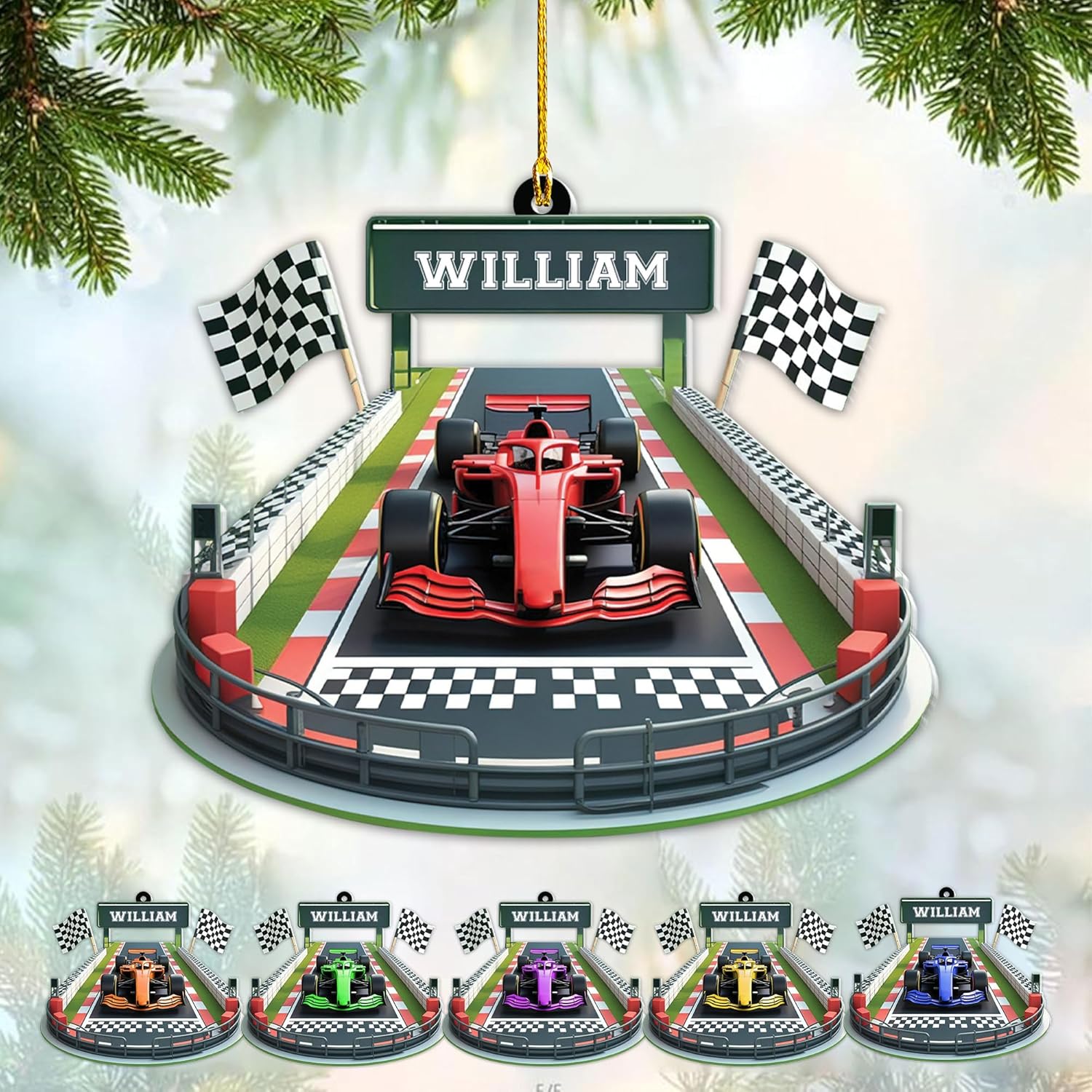 Custom Race Car Christmas Ornament – Personalized Acrylic Racing Car Decoration, Motorsport Gift for Drivers TR6
