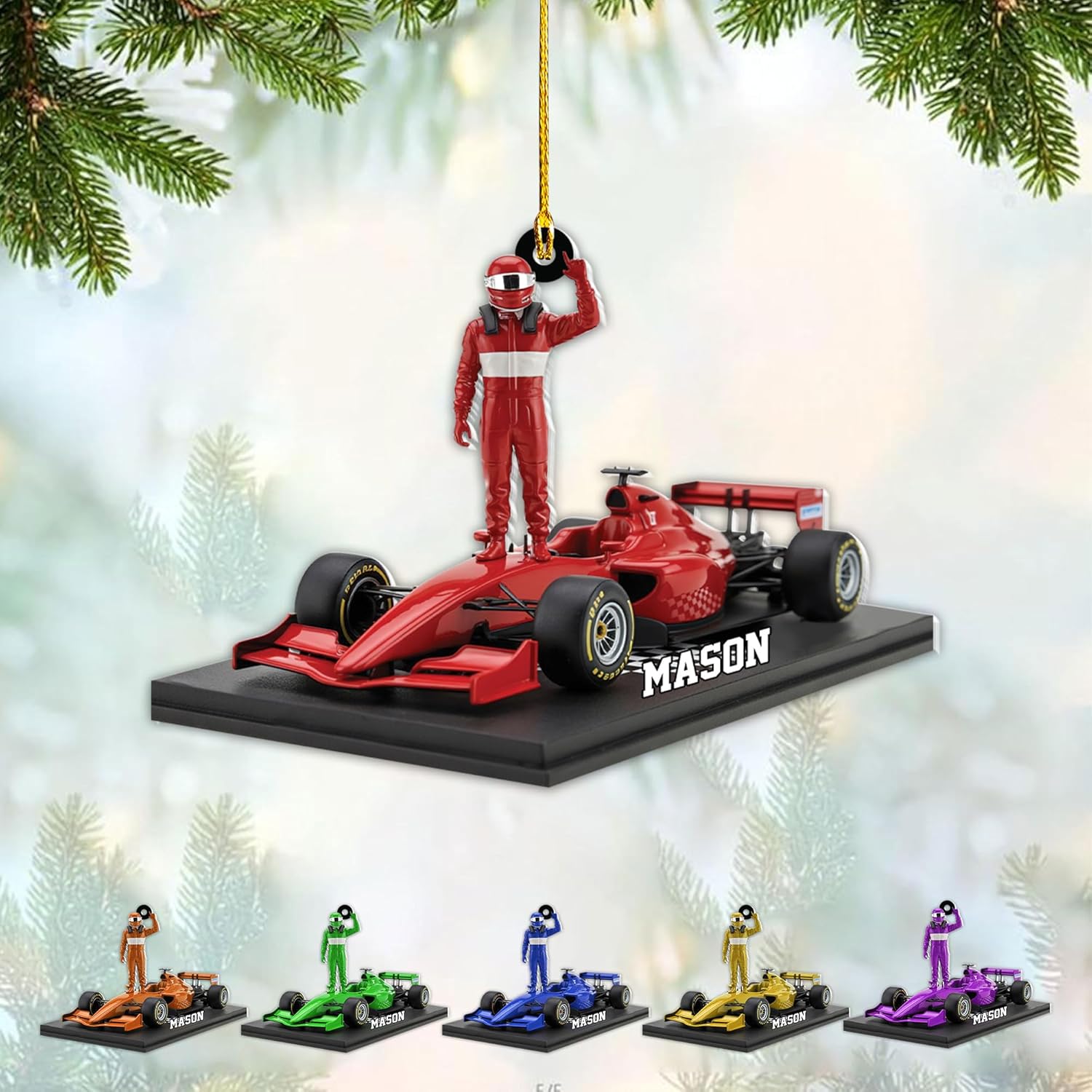 Custom Race Car Christmas Ornament – Personalized Acrylic Racing Car Decoration, Motorsport Gift for Drivers TR7