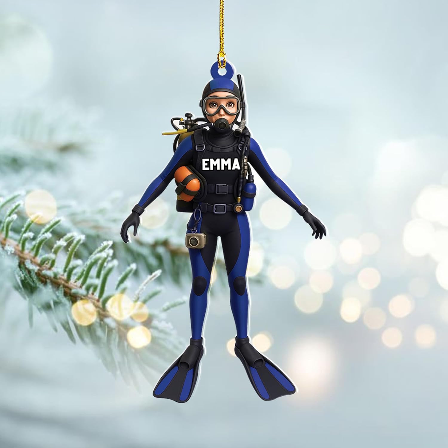 Custom Scuba Diver Ornament – Personalized Acrylic Christmas Tree Decoration, Gift for Divers and Swimmers TSD26