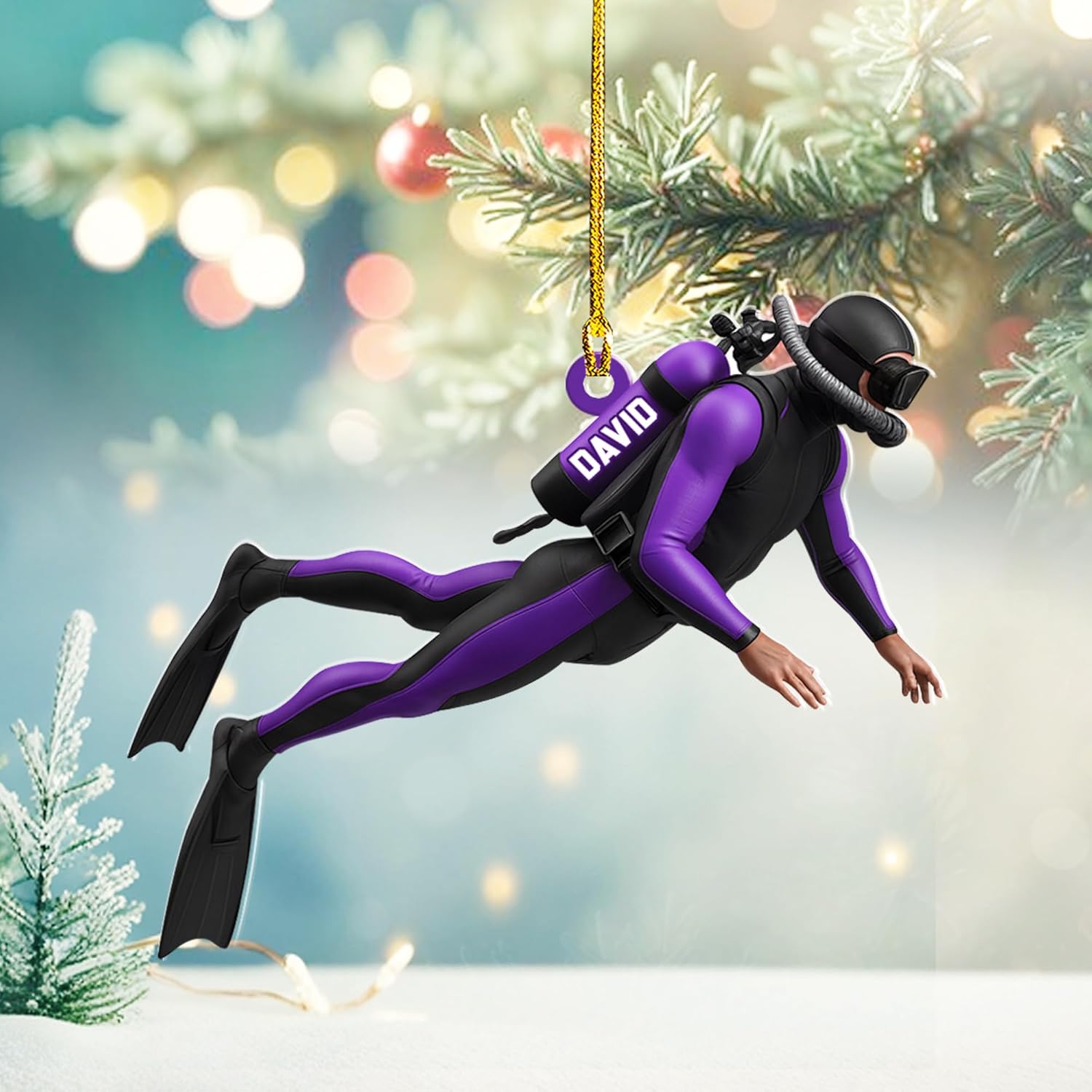 Custom Scuba Diver Ornament – Personalized Acrylic Christmas Tree Decoration, Gift for Divers and Swimmers TSD27