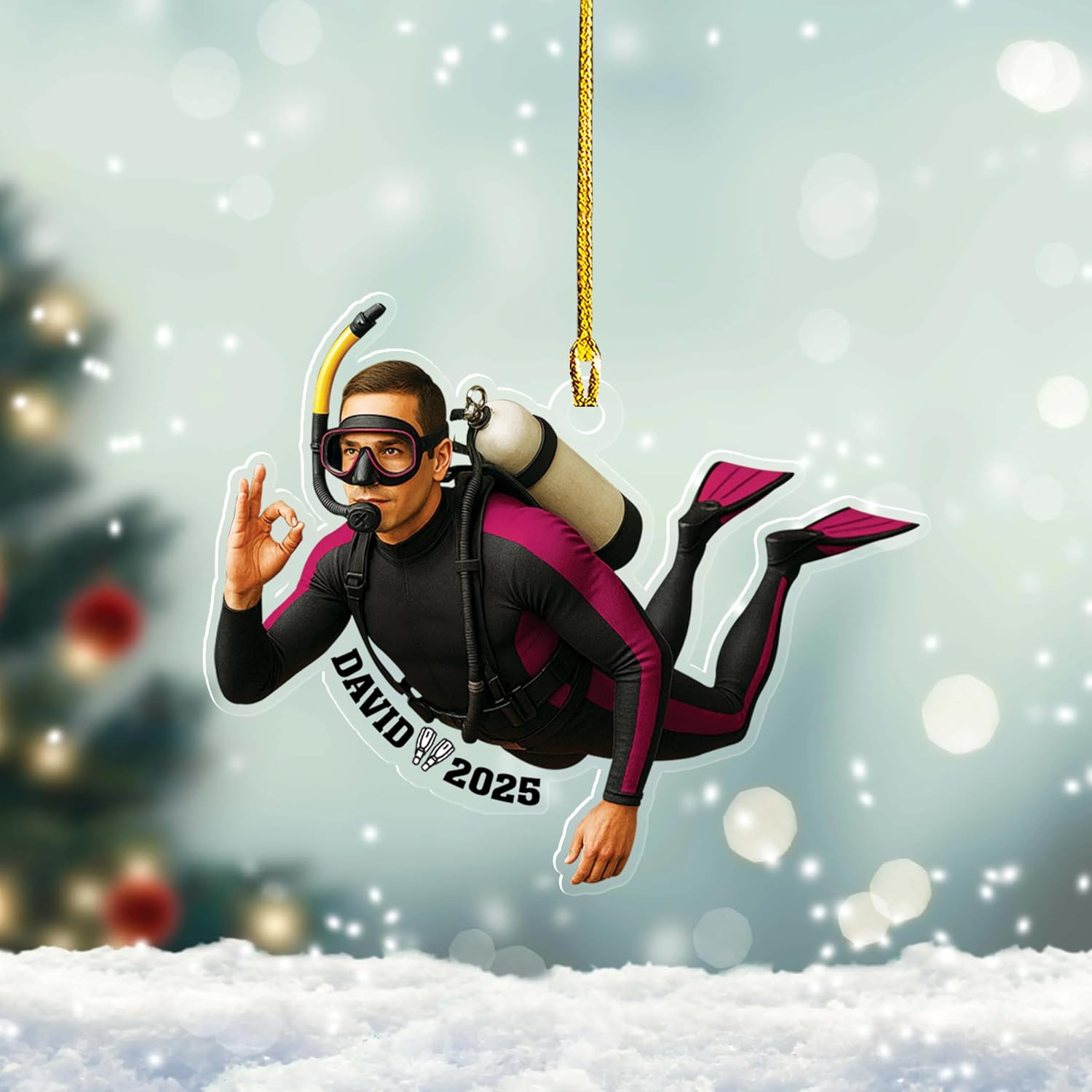 Custom Scuba Diver Ornament – Personalized Acrylic Christmas Tree Decoration, Gift for Divers and Swimmers TSD30