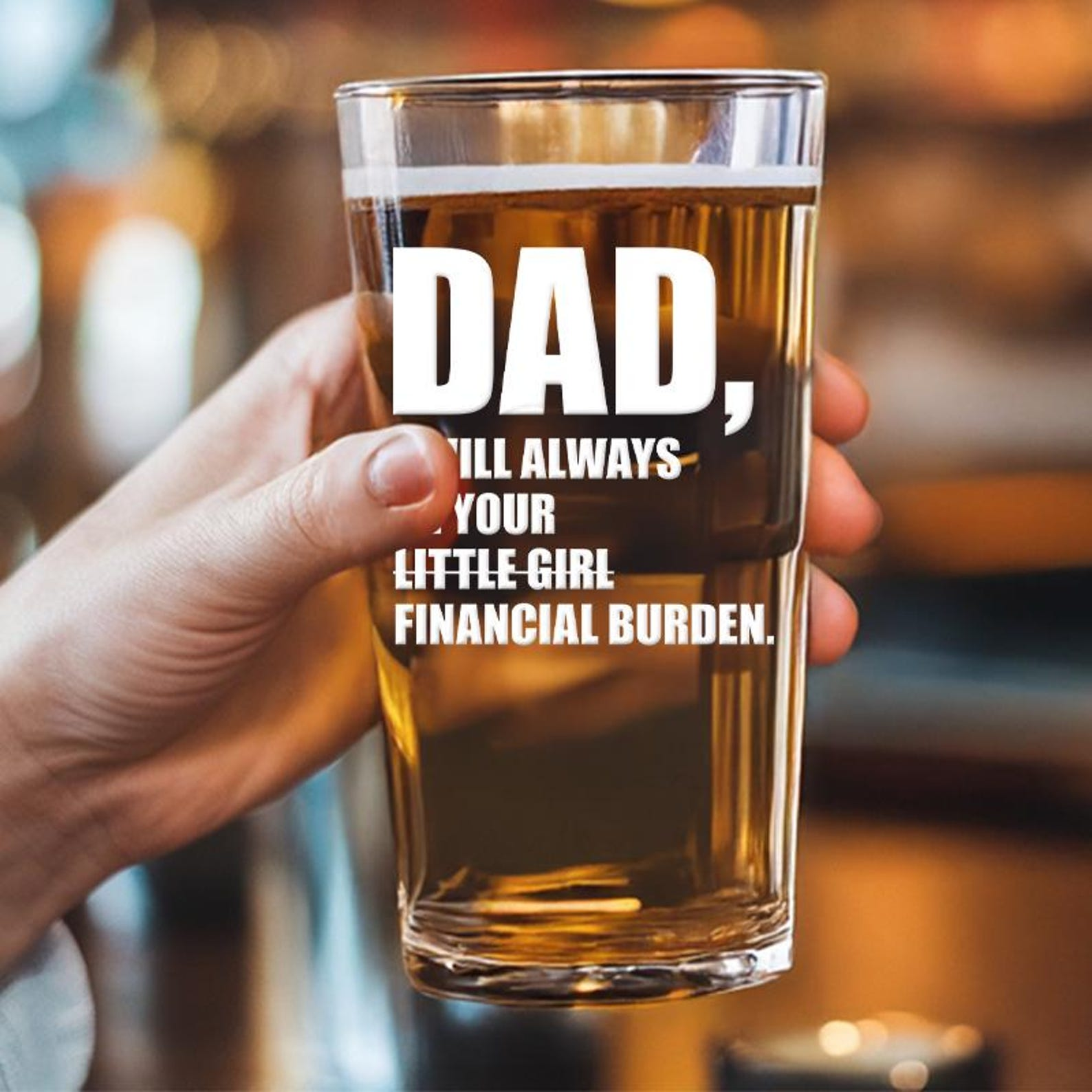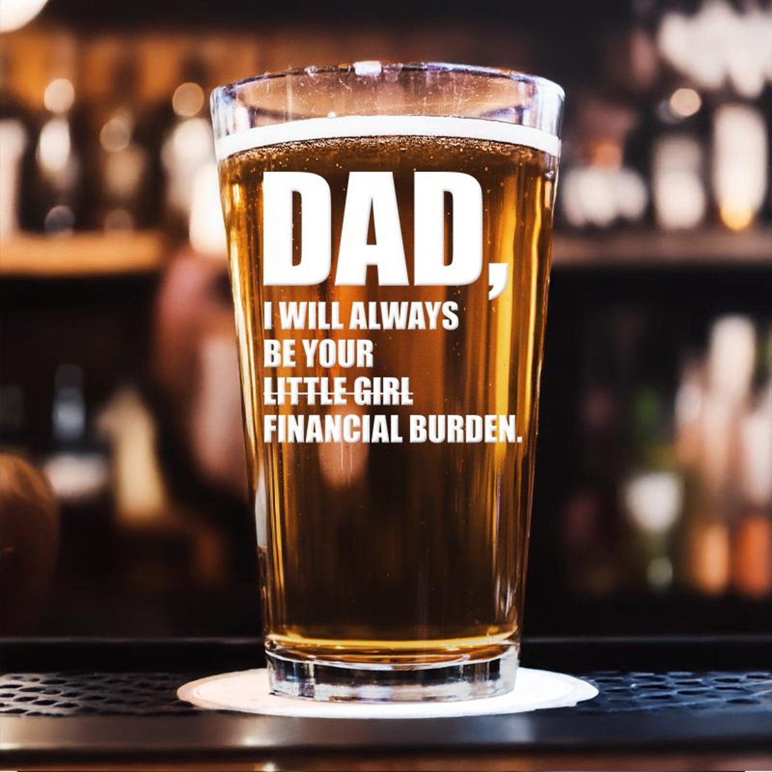 Dad I Will Always Be Your Little Girl Financial Burden Pint Glass | Personalized Dad Est | Fathers Day Gift | Gift for Dad Beer Glass