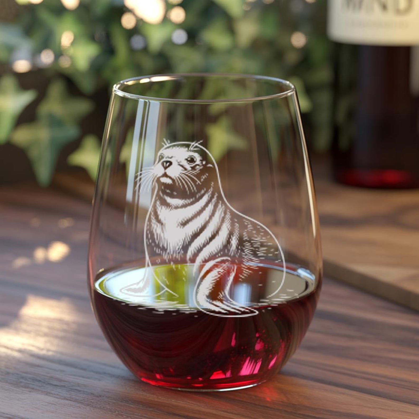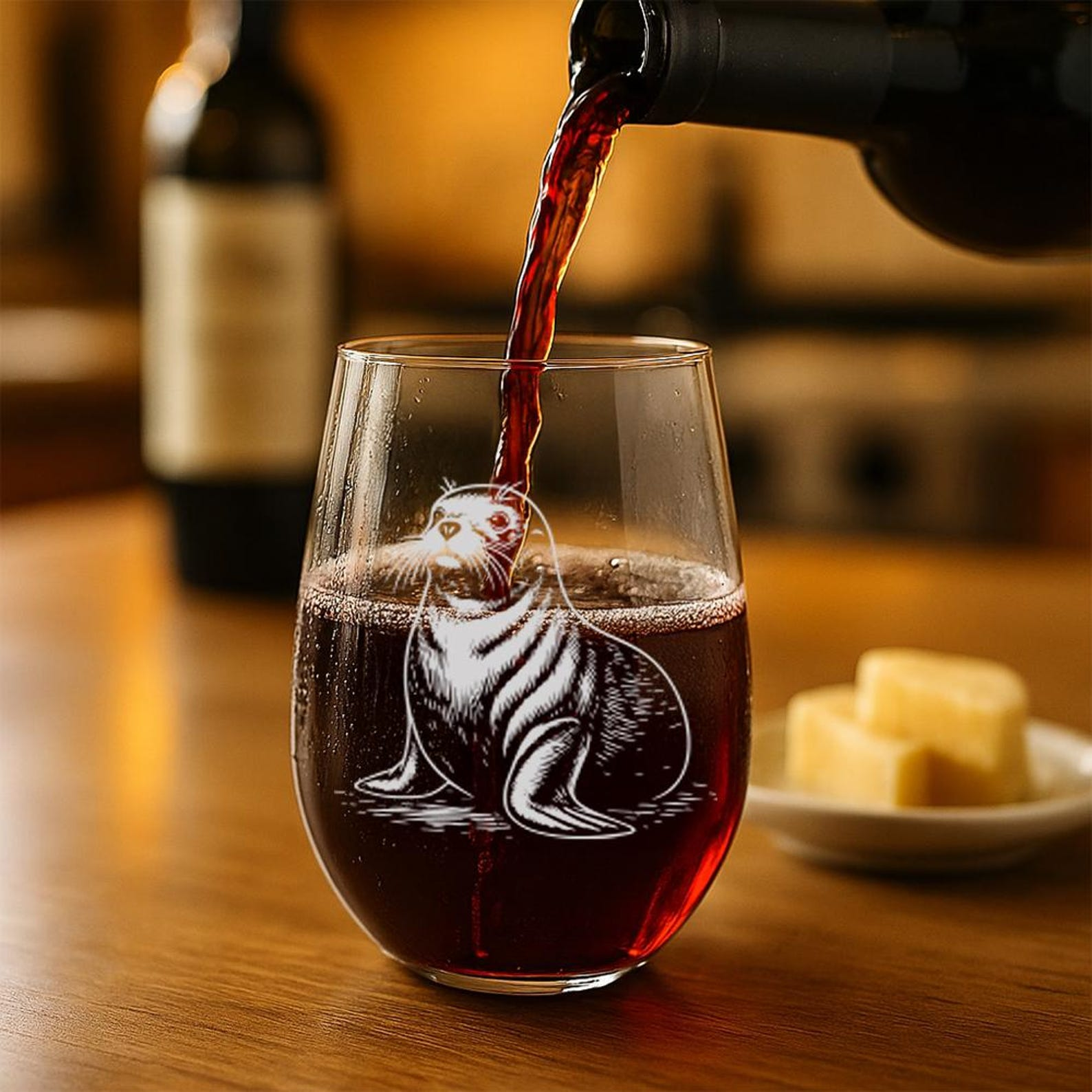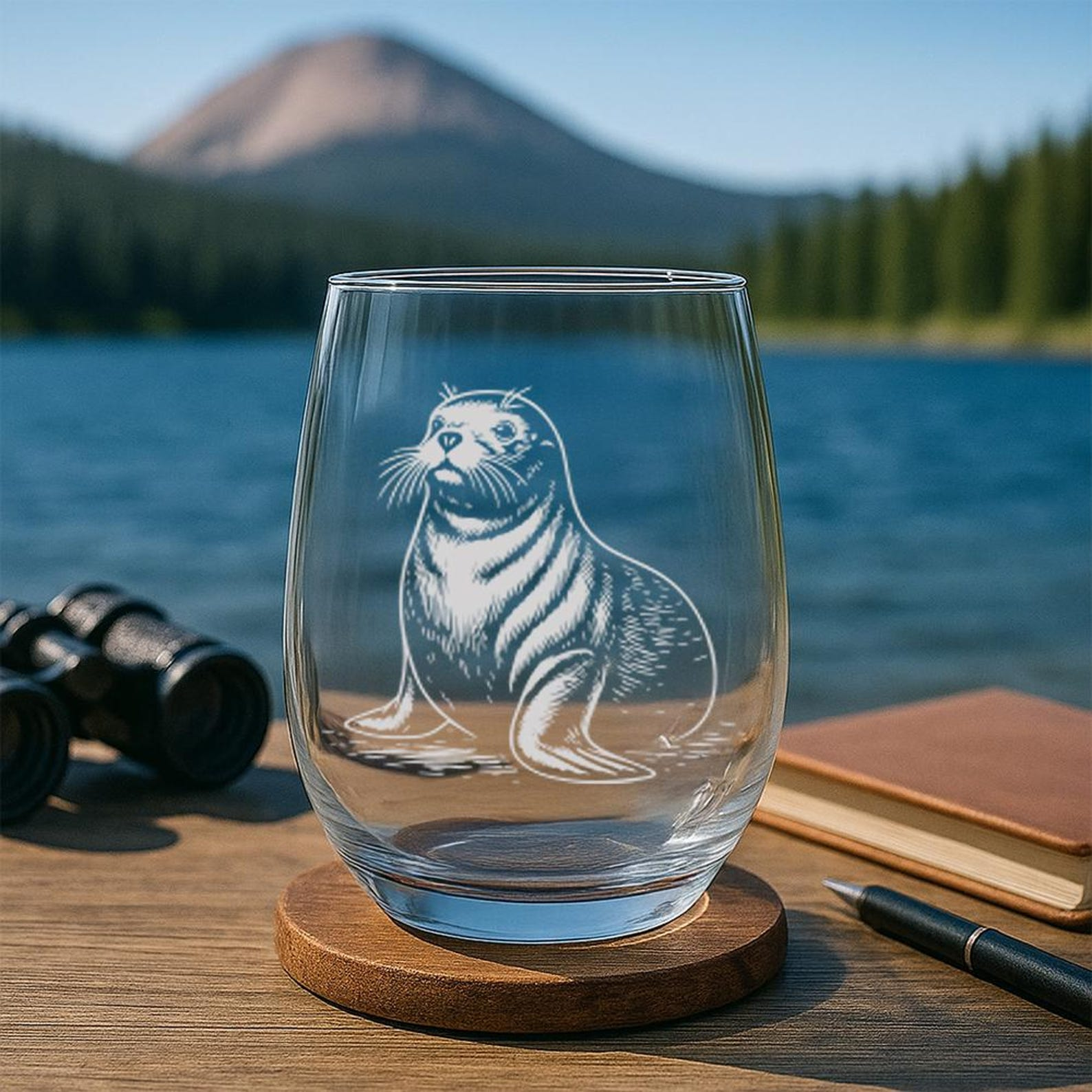 Seal Beer Can Glass | Etched Seal Silhouette Beer Can Glass | Gift for Ocean Lovers