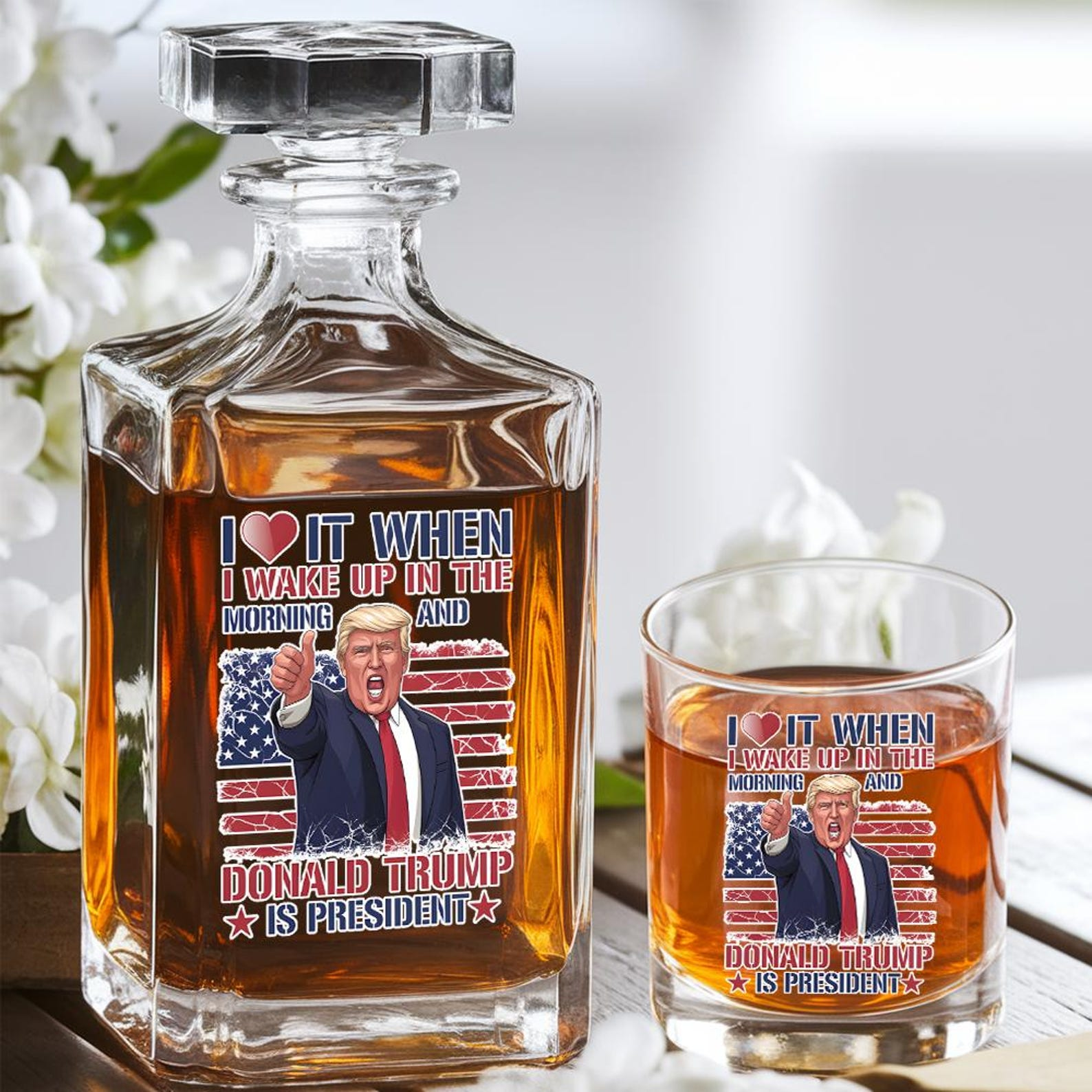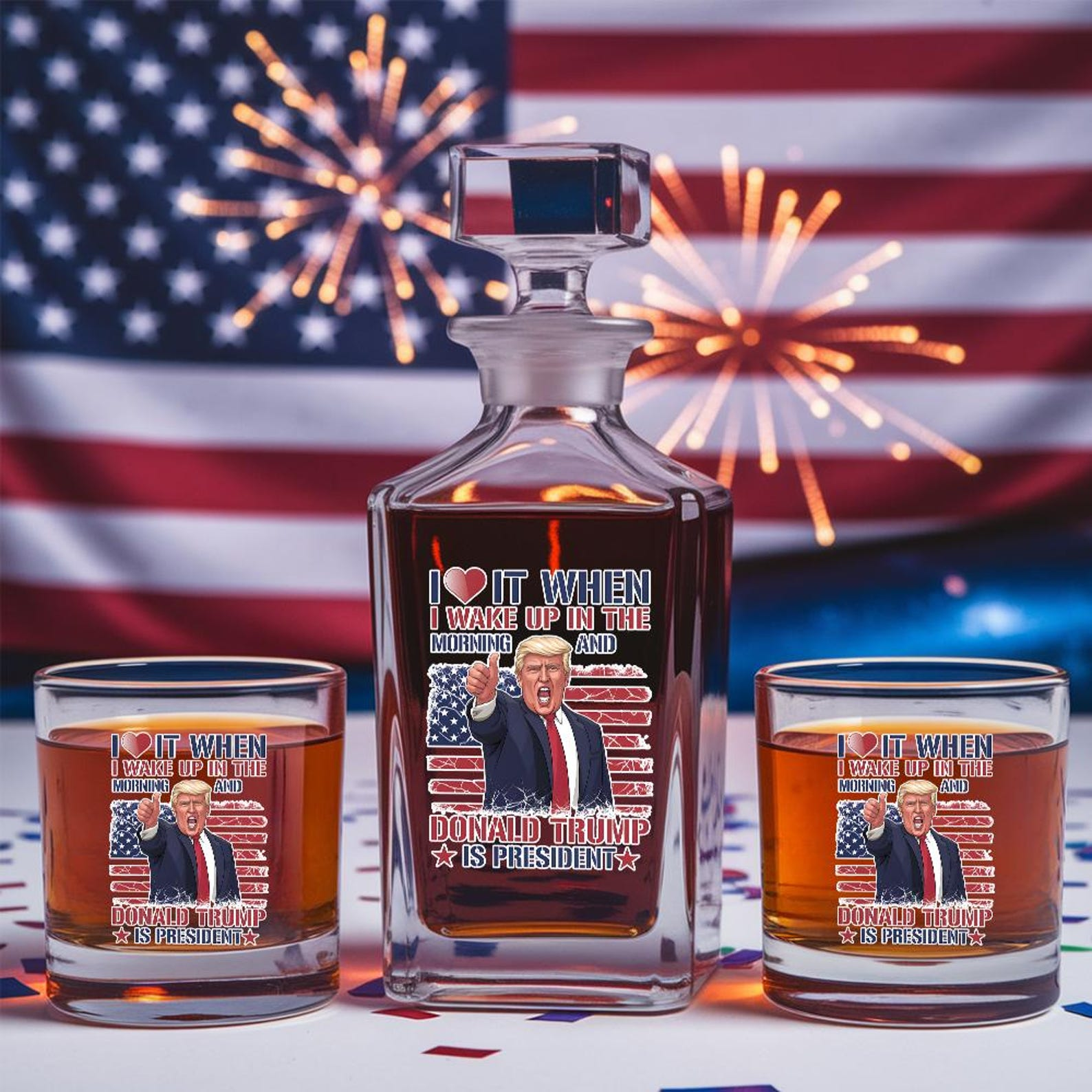 President Trump Decanter & Whiskey Glass Set | Patriotic Gift | Engraved Whiskey Decanter