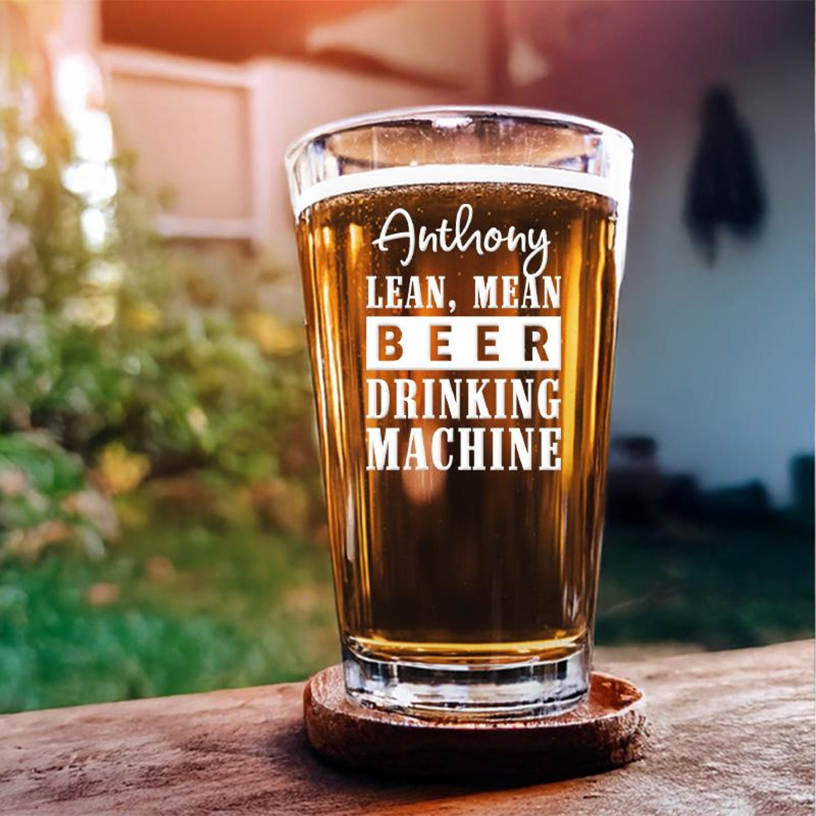 Custom Name Drinking Machine Engraved Pint Glass | Funny Gift Idea | Engraved Beer Glass